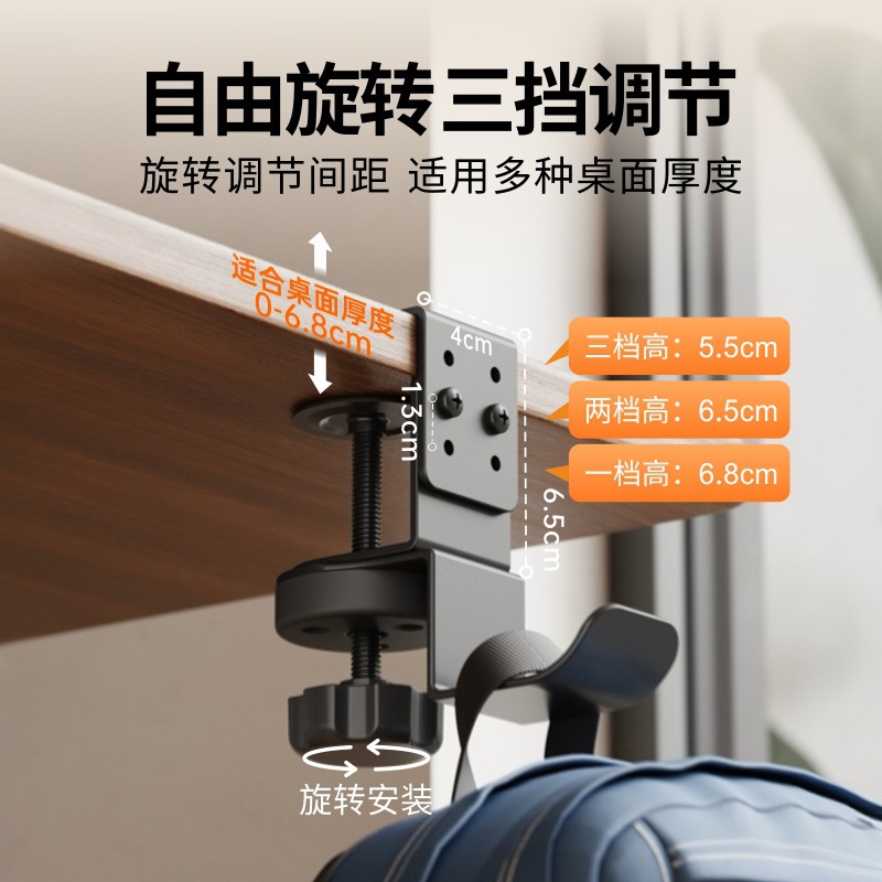 免打孔书包挂钩桌边挂钩旋转隐藏加厚防滑耳机支架家用强承重支架