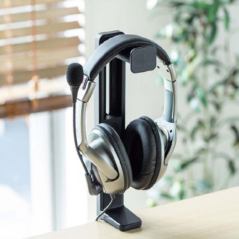 私型デスクサイドクリップ式フックヘッドセット360度回転イヤホンスタンドラック収納式イヤホンラック