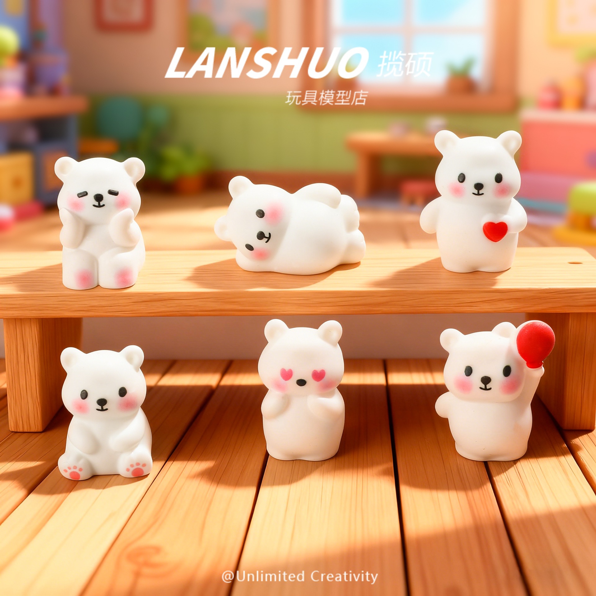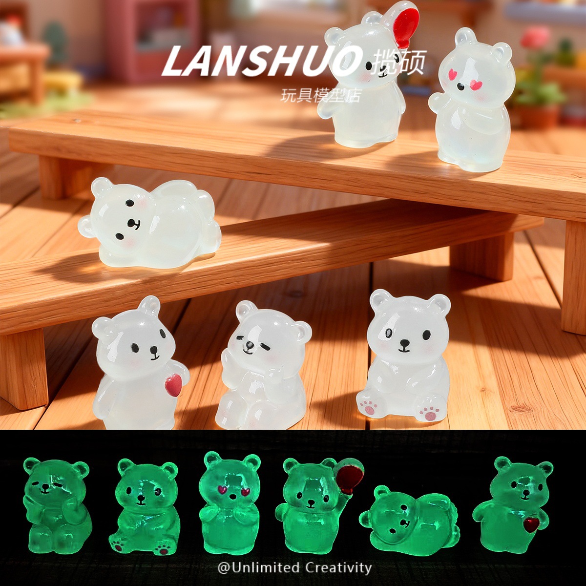 卡通呆萌立体夜光可爱小熊公仔 树脂潮玩DIY配件自制家居桌面