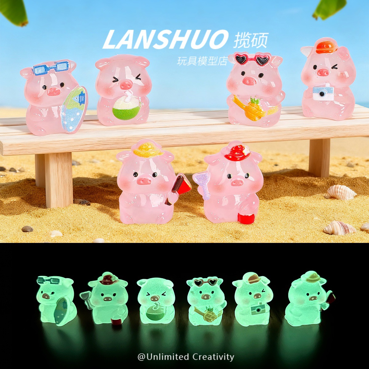 树脂夜光粉红发财猪公仔 DIY饰品配件创意桌面摆件自制钥匙扣挂件