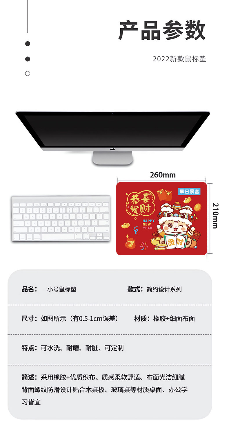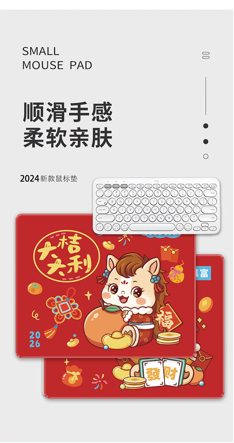 马年发财鼠标垫小号男女生学习桌垫笔记本电脑便携键盘垫2026红色