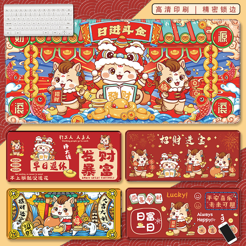 2026马年鼠标垫国潮红色新年防滑垫工厂画师授权定制桌垫大尺寸