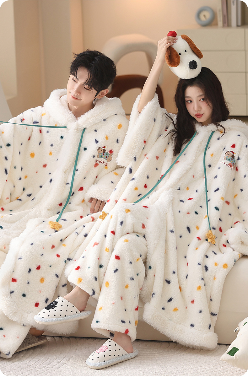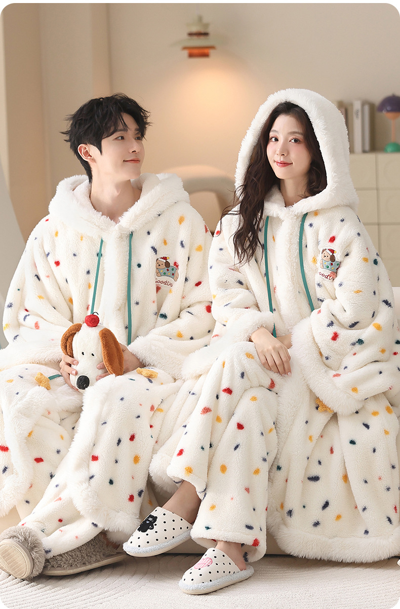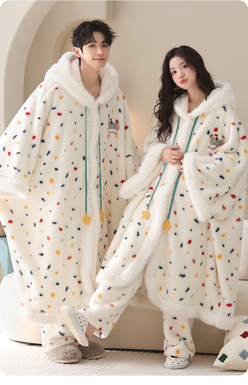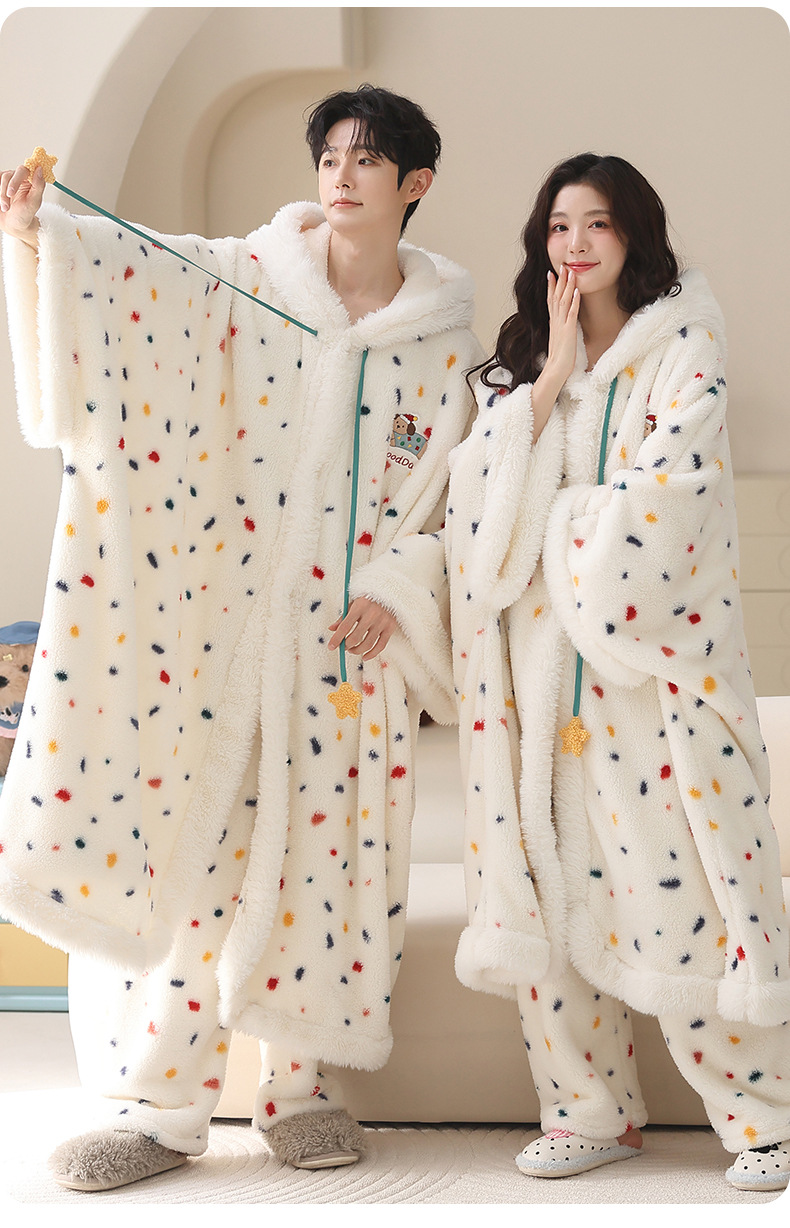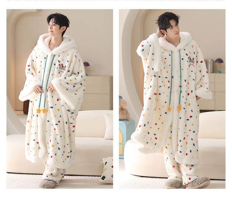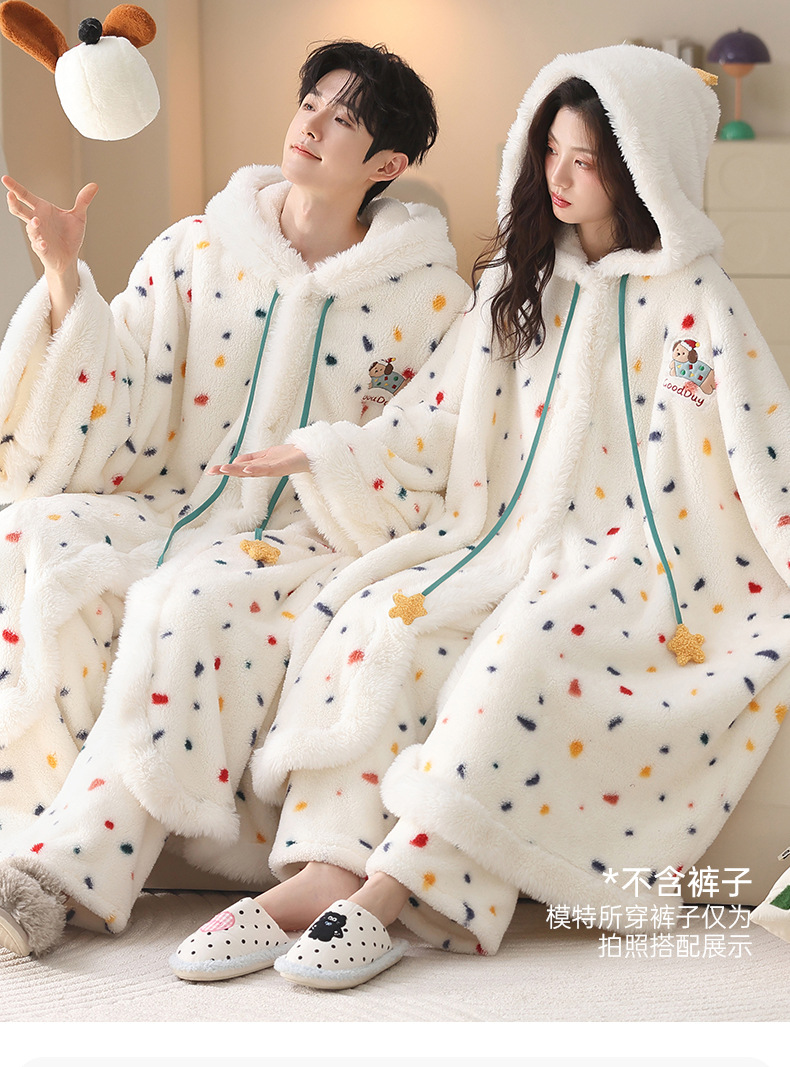メアリーキャット 厚手カップル用ナイトガウン パジャマ 秋冬新作 コーラルベルベットバスローブ メンズルームウェアセット 外出着としても着用可能