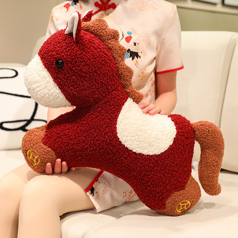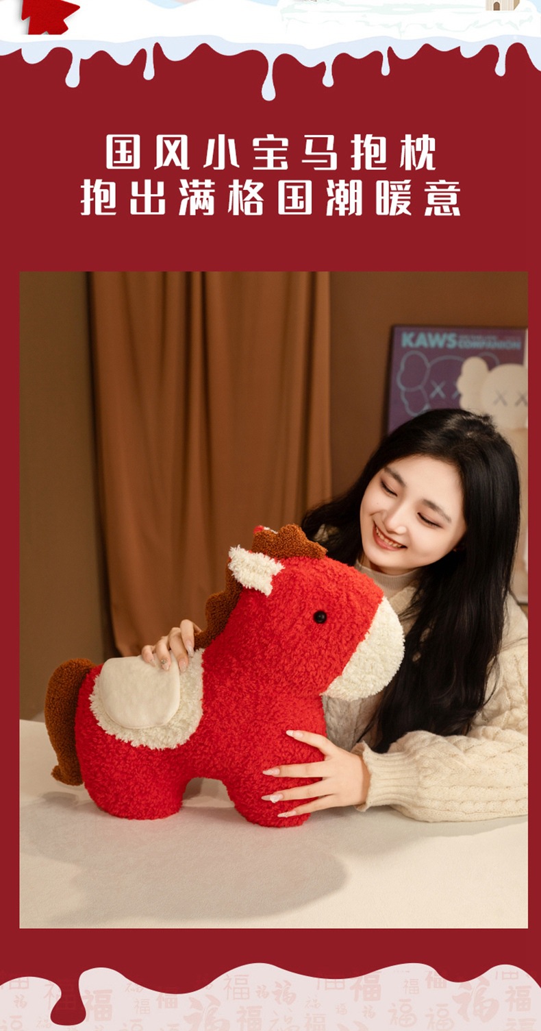 马年吉祥物新年抱枕毛绒玩偶沙发客厅装饰摆件小红马靠枕礼物