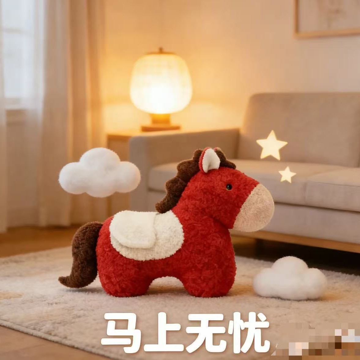 2026马年吉祥物国风小马公仔毛绒玩具活动礼品春节装饰抱枕摆件