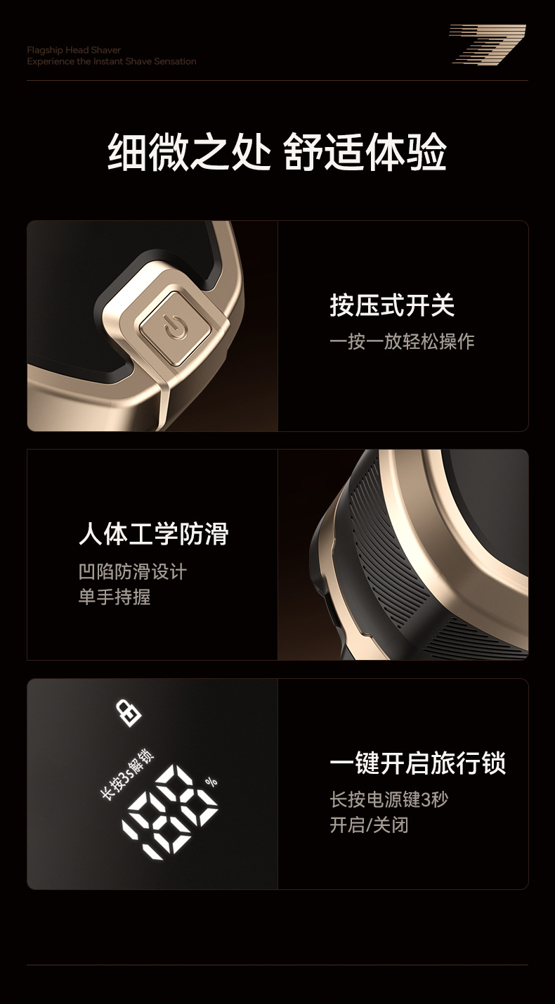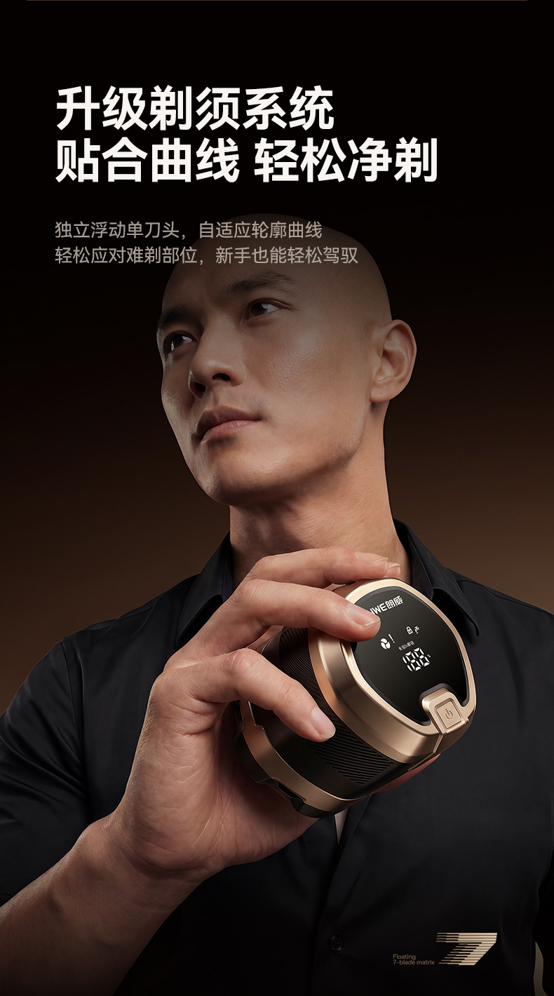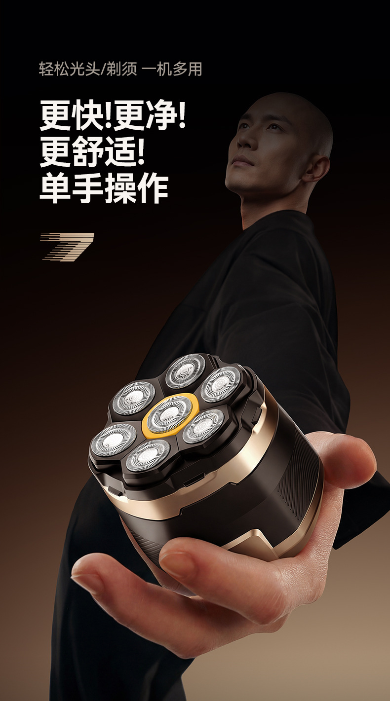 磁吸7刀头光头神器数显可调速电动剃须刀刮胡全身水洗刮胡刀
