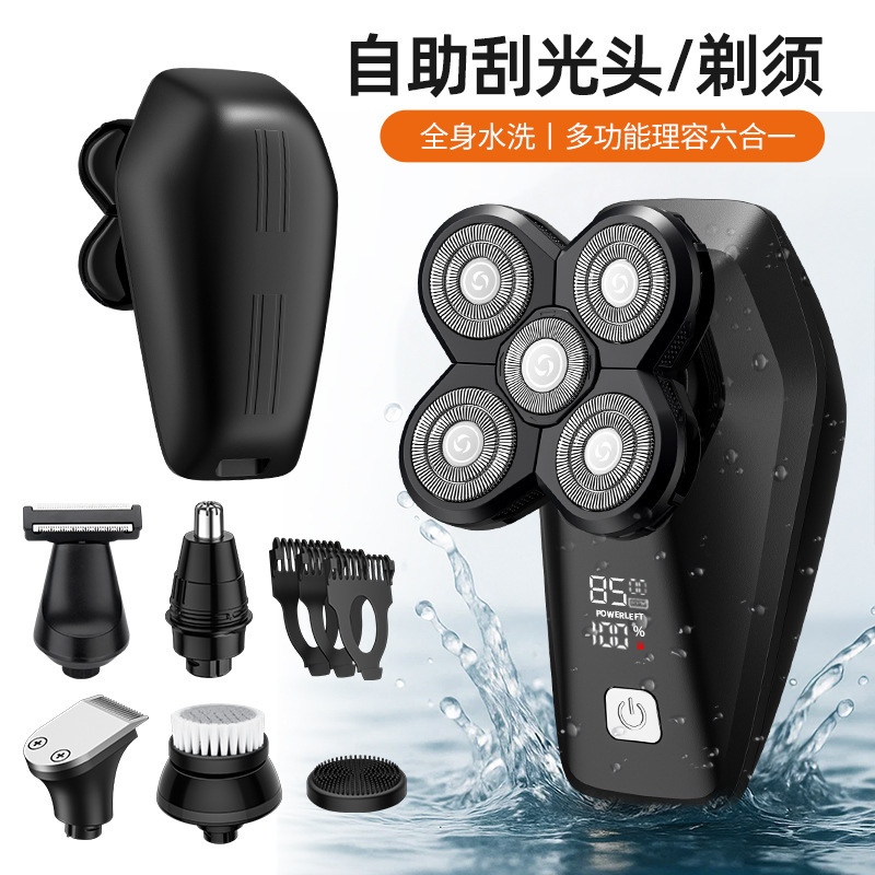 跨境智能TYPE-C数显五刀头电动剃须刀光头理发器充电式六合一胡须