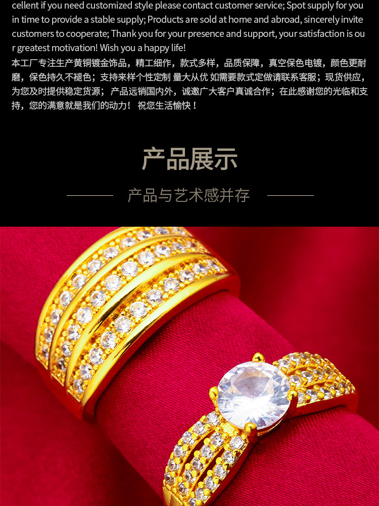 越南沙金女士时尚新款沙金戒指批发跨境饰品时尚女生戒指钻