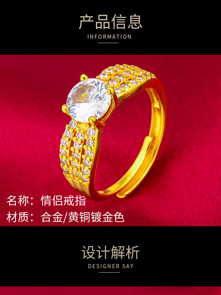 越南泰国戒指钻戒指合成玻璃钻戒指批发开口跨境亚马逊情侣戒指