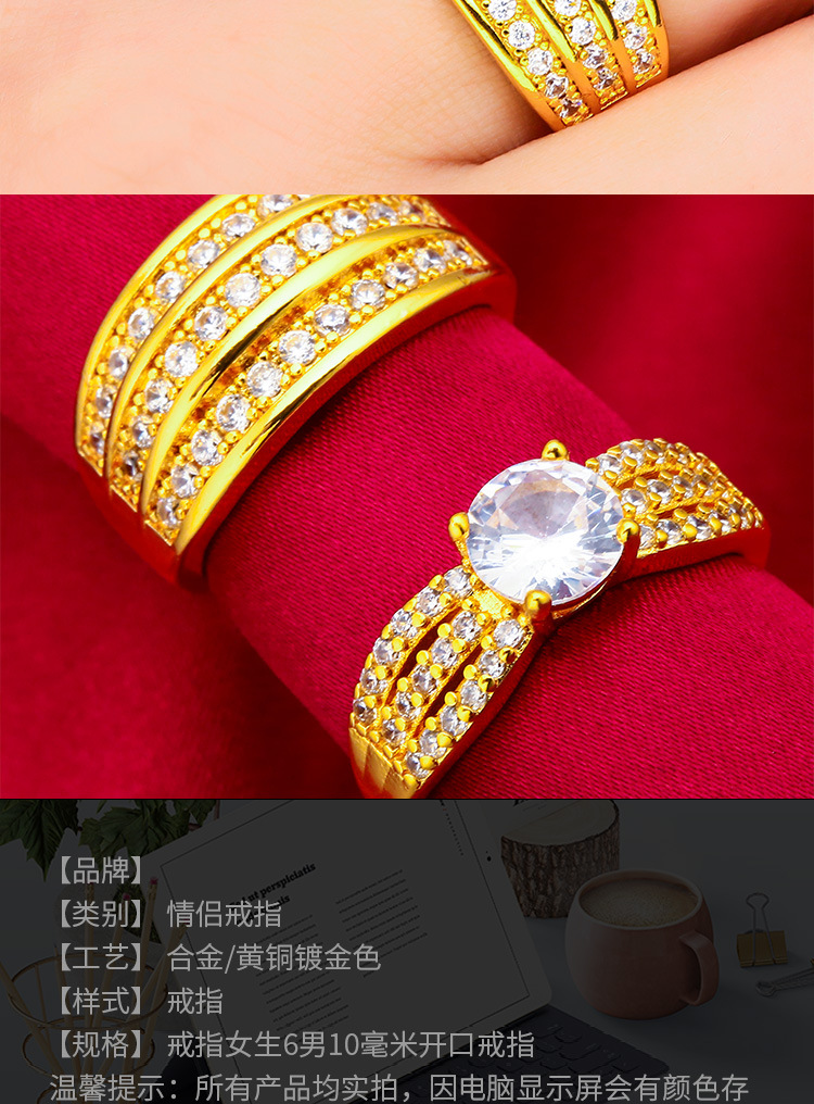 越南沙金情侣戒指批发跨境亚马逊饰品首饰情侣戒指3