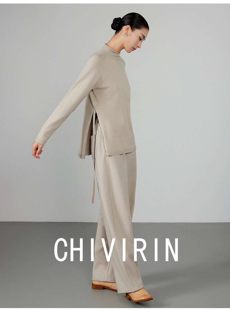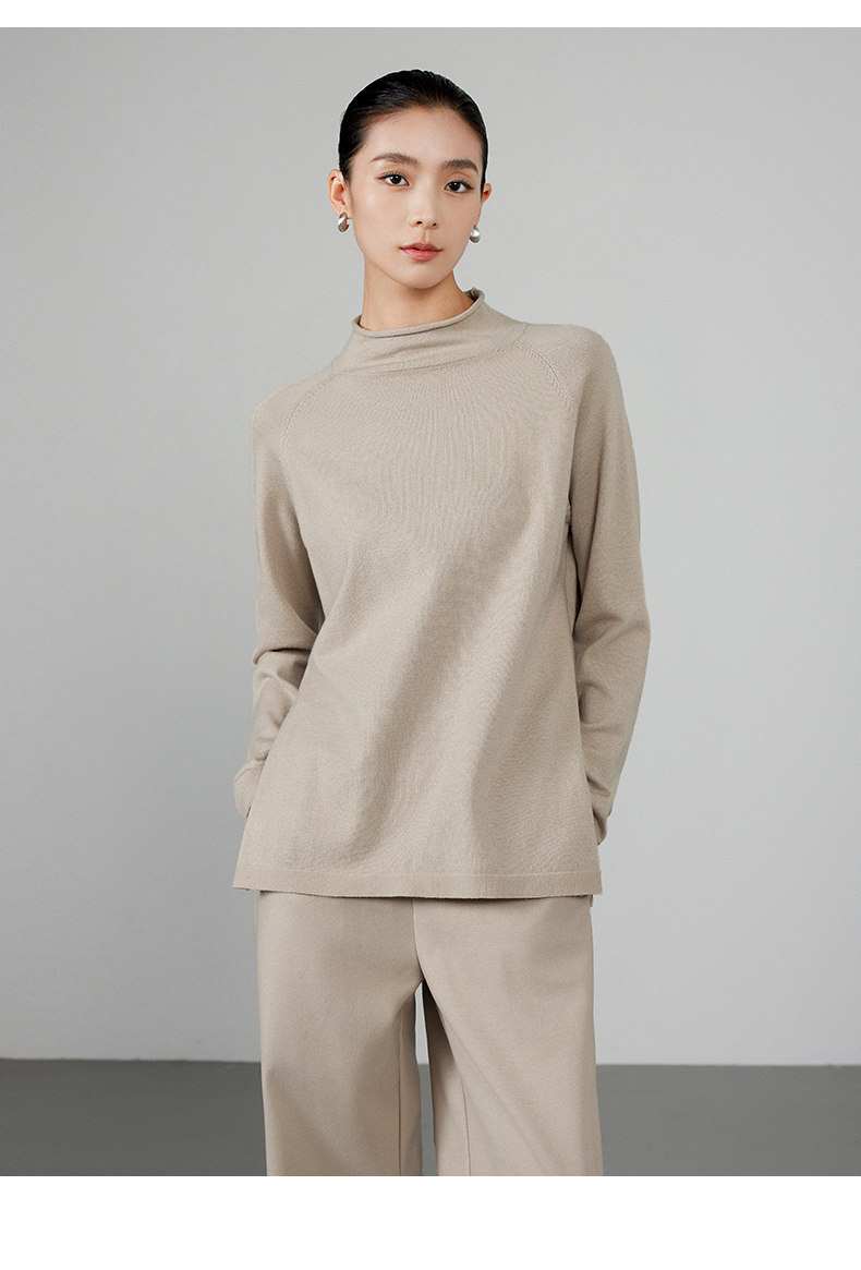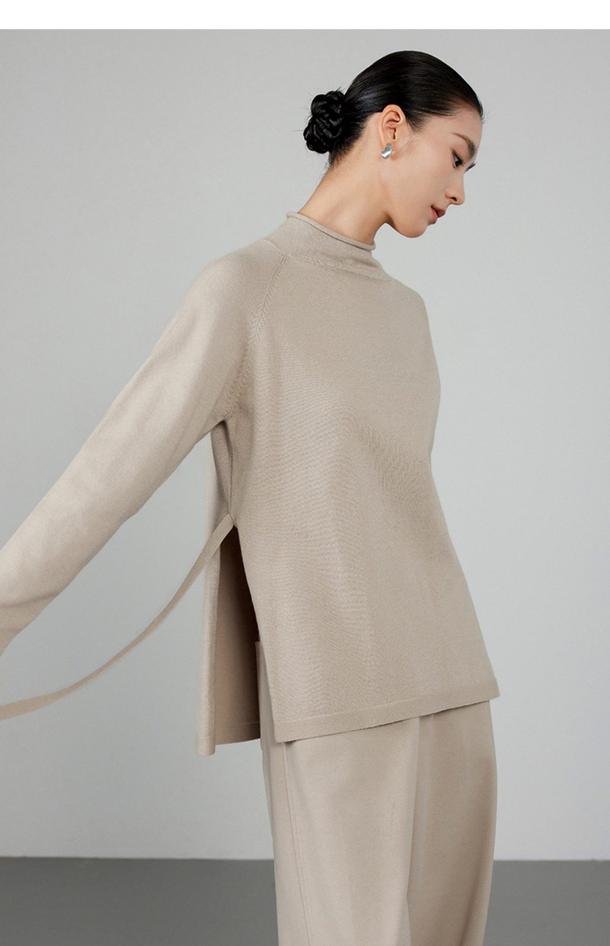 设计感小众开叉套头T桖女2026早春基础款简约外穿叠穿燕麦色上衣