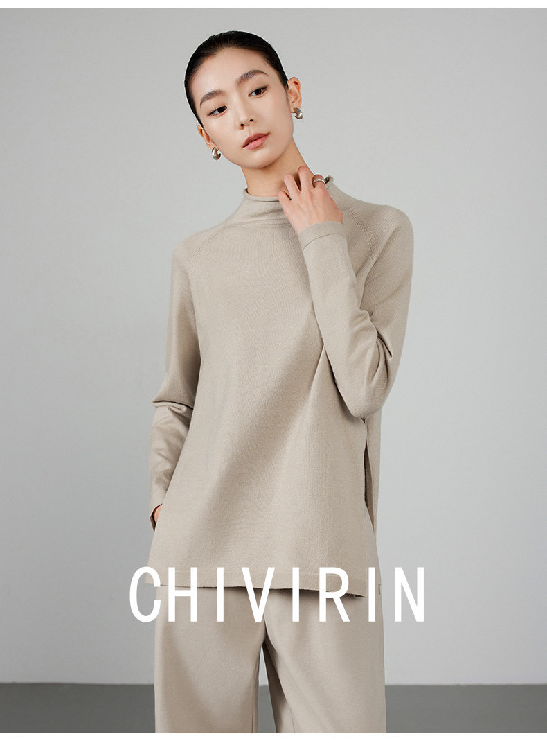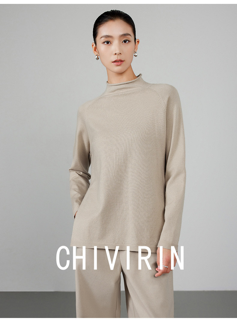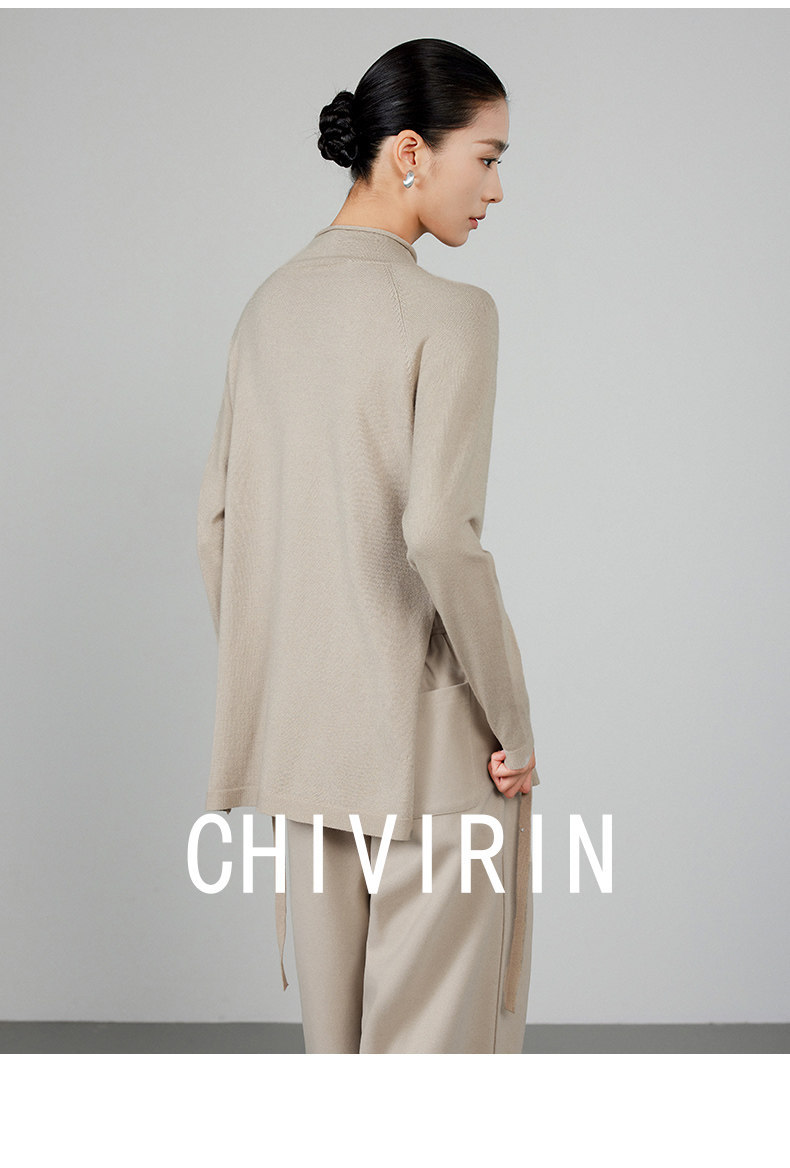 高领长袖咖色针织开衫女2026早春新款设计感小众宽松显瘦时尚上衣