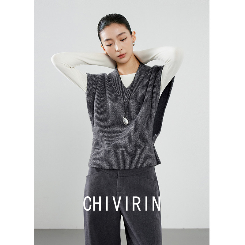 2025年早春新款v领无袖针织衫女设计感小众气质百搭叠穿马夹上衣