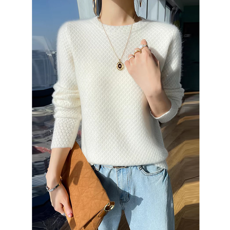 设计感小众菱形提花毛衣女2026年早春新款绵羊毛山羊绒混彷针织衫