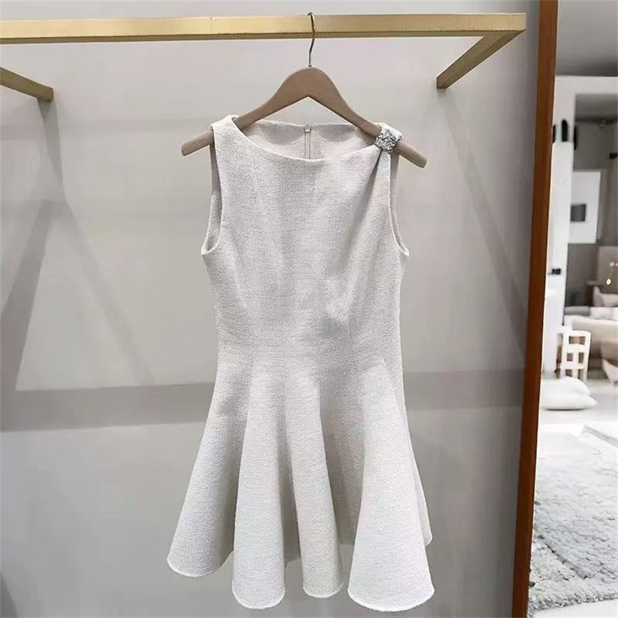 法式优雅2025春夏新浪漫淡黄色蕾丝美肩露背收褶无袖长款连衣裙