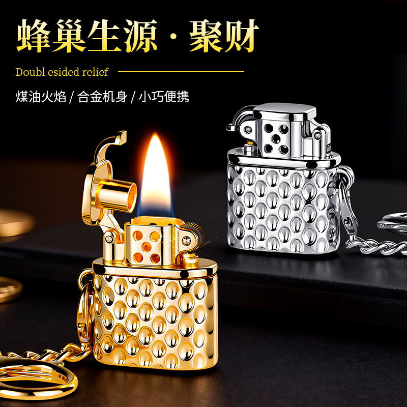 蜂巢迷你煤油打火机经典砂轮加油钥匙扣打火机高颜值送男友礼物潮