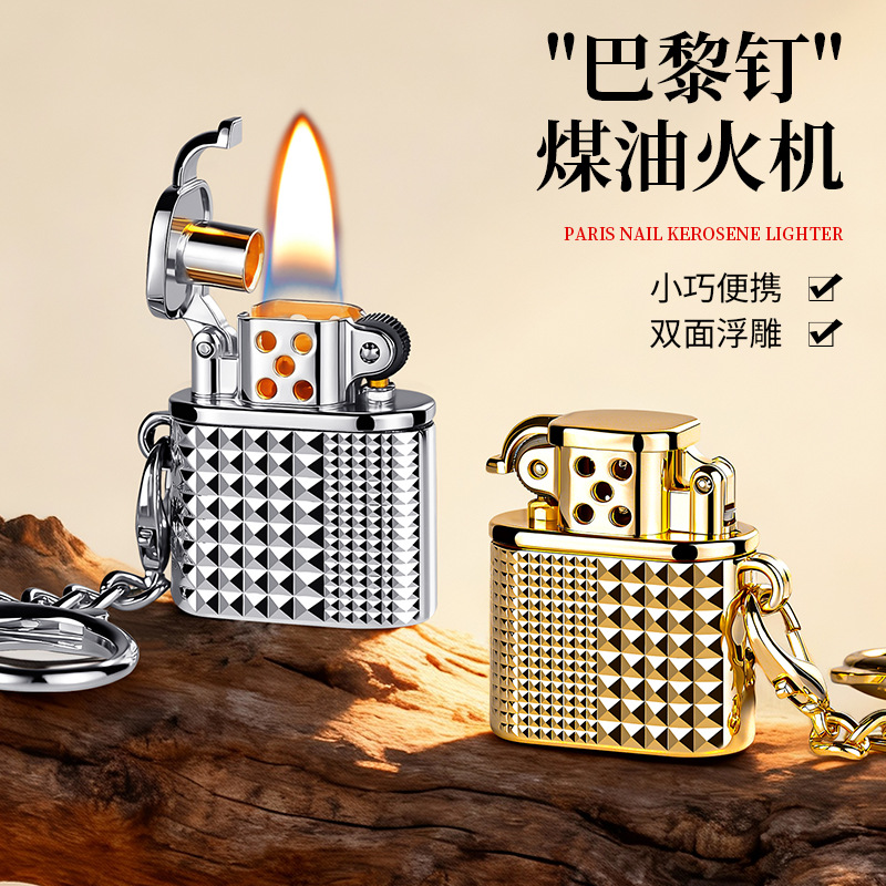 新款巴黎钉便携迷你指尖玩物煤油小打火机钥匙扣挂件式砂轮打火机