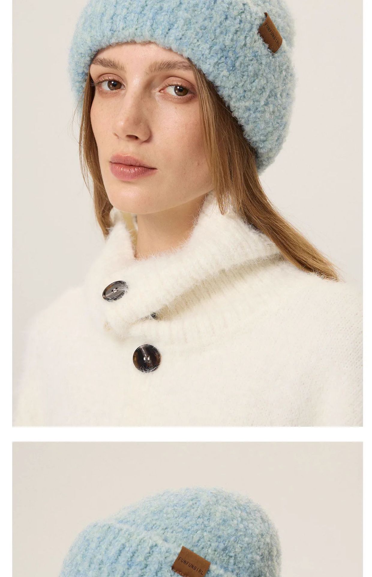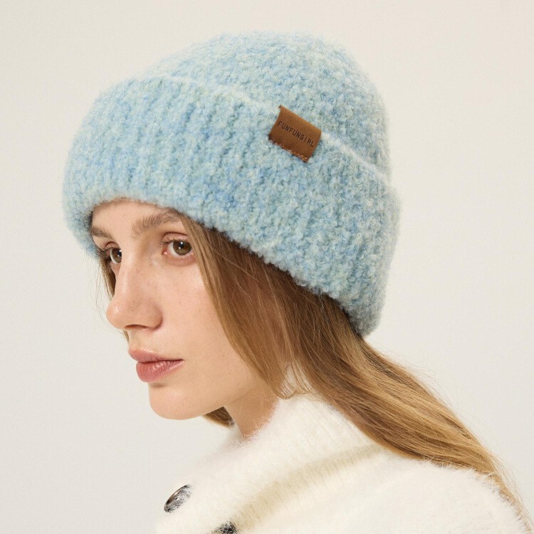 出口日单~设计师金标卷边毛线帽女冬季加厚保暖羊毛针织帽防寒护