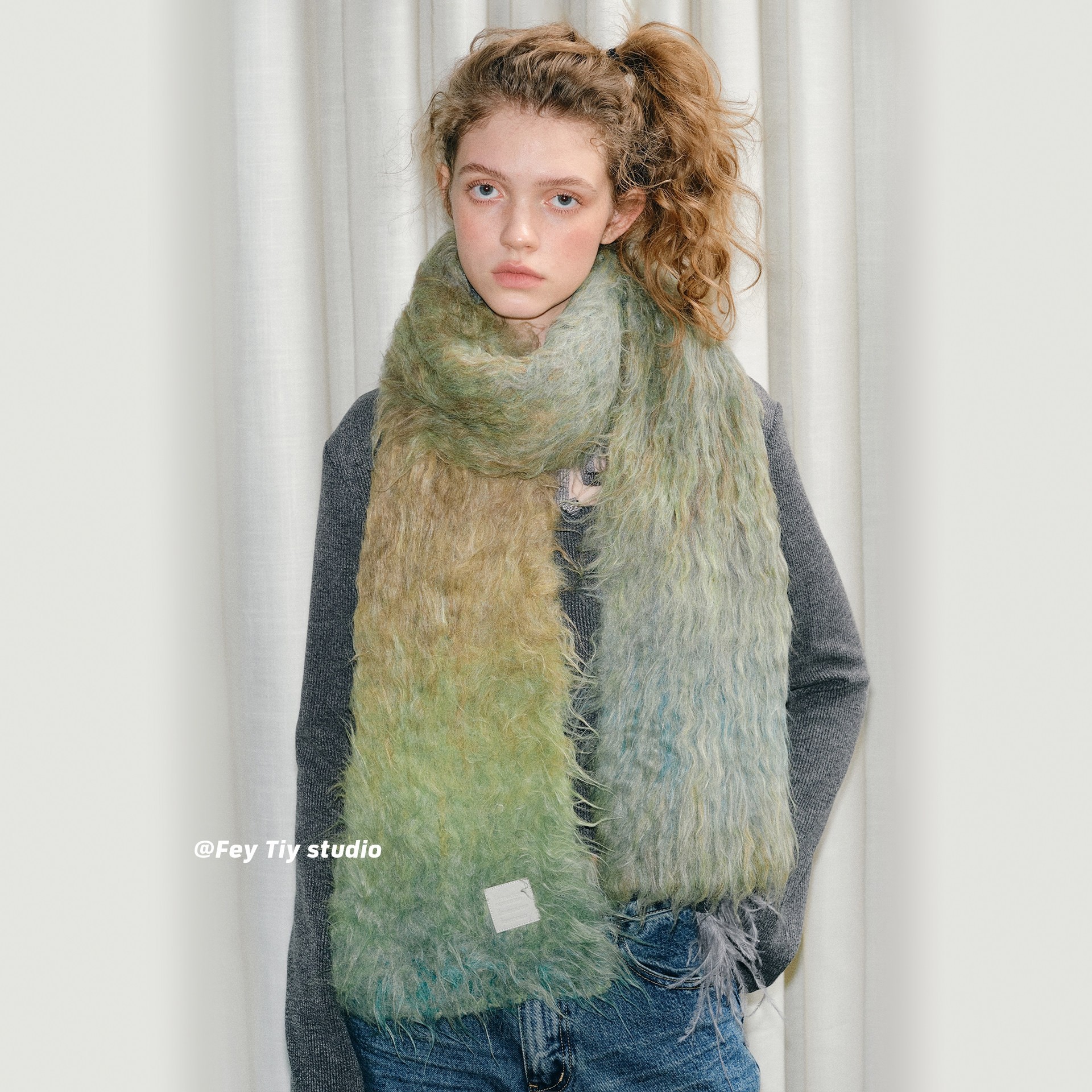 出口欧洲单~新款秋冬羊毛拉毛针织围巾重磅蓬松慵懒渐变围脖百搭