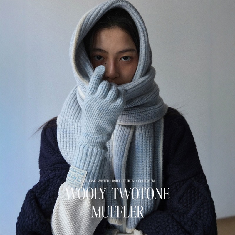 韩国国订单款2025新品官网正品代购 保暖厚实撞色边手套围巾套装