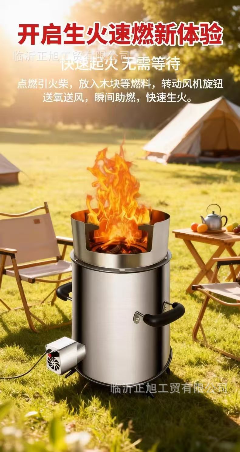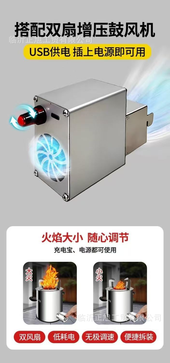 户外家用柴火炉大风力气化炉调速充电宝鼓风机柴火炉汽化炉
