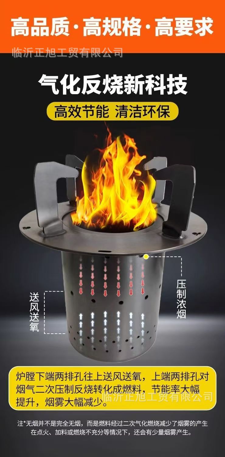 炉子柴火户外木材野炊新型不锈钢无烟家用便携气化炉农村柴火炉