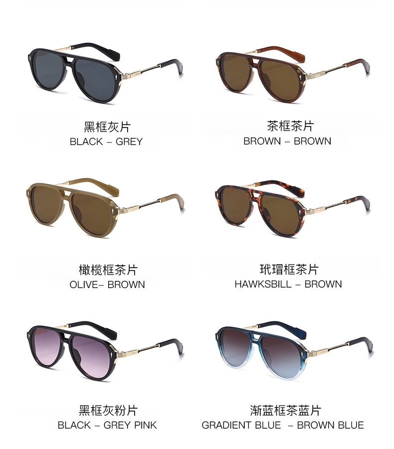 24新型ファッション金プラスチック混合越境潮流双梁ヒキガエルサングラス男性屋外運転サングラス卸売り