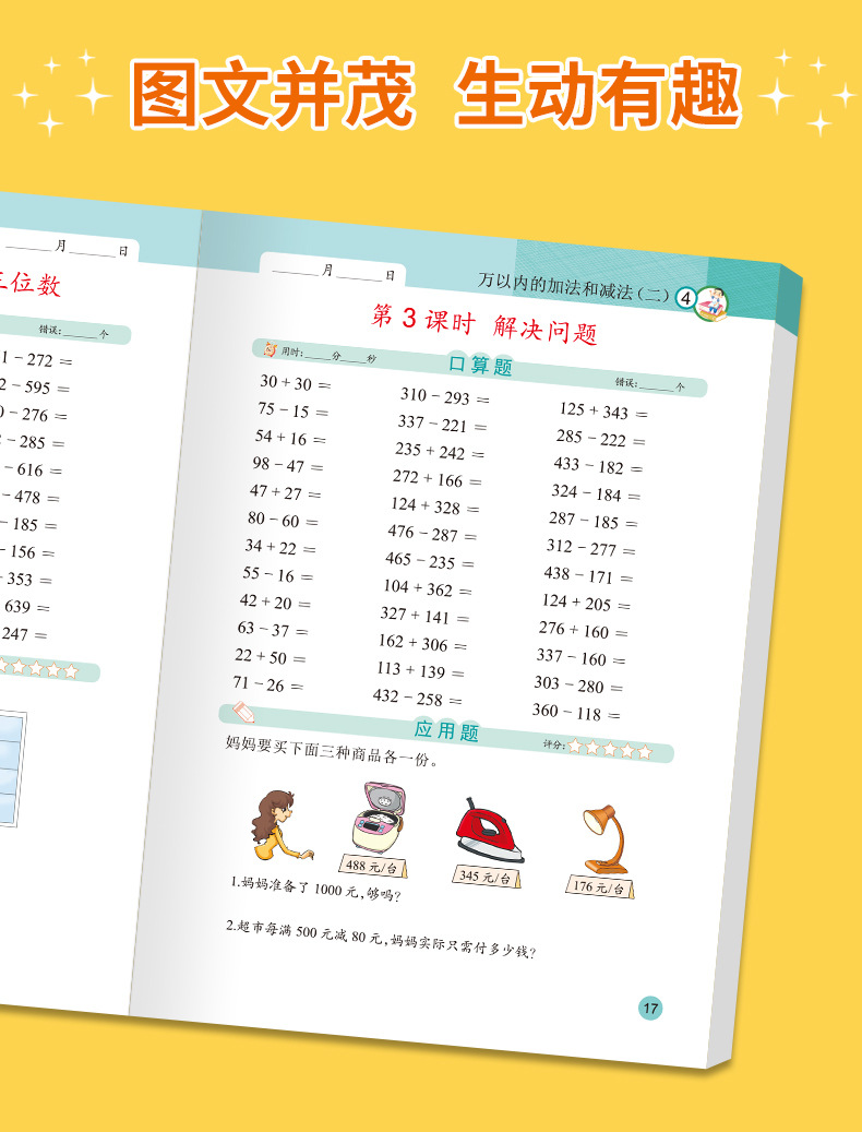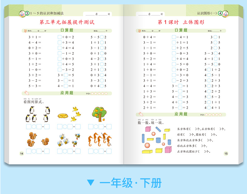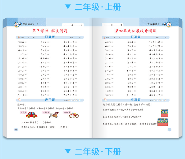 口算問題カード一二三年生上下巻縦式計算応用問題三合一人教版数学練習帳