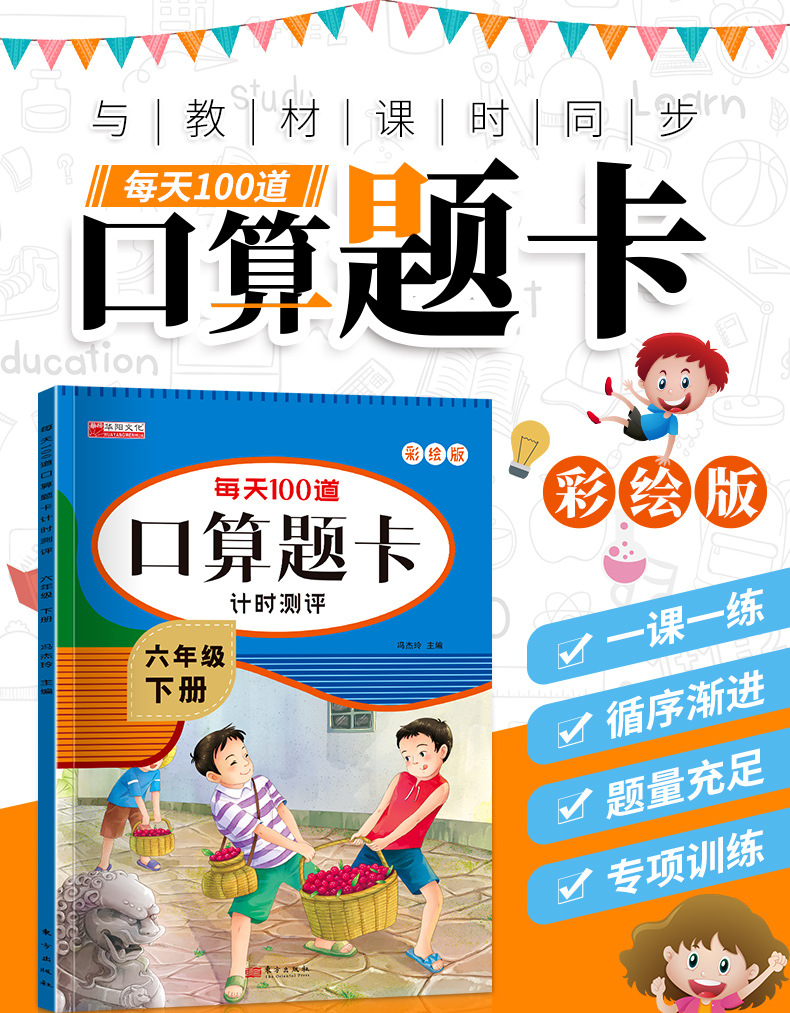 小学1年生から6年生までの上下巻小学生口頭算数問題カード、小学生算数毎日練習問題集卸売