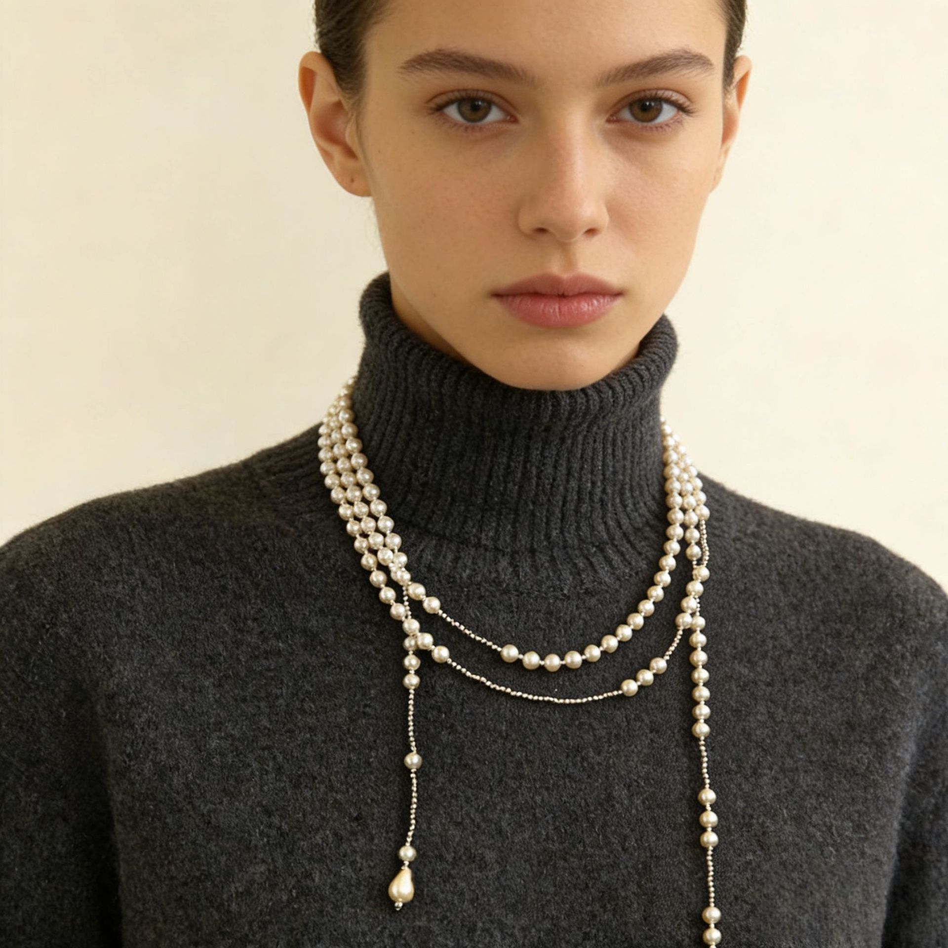 博主同款时尚可叠戴高级感珍珠项链长款毛衣链项饰秋冬新品