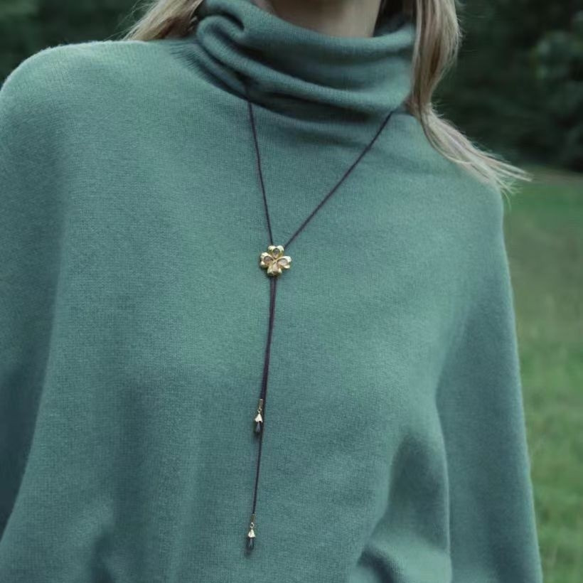 护身符系列四叶草镶石抽绳项链复古风百搭长款毛衣链高级项饰