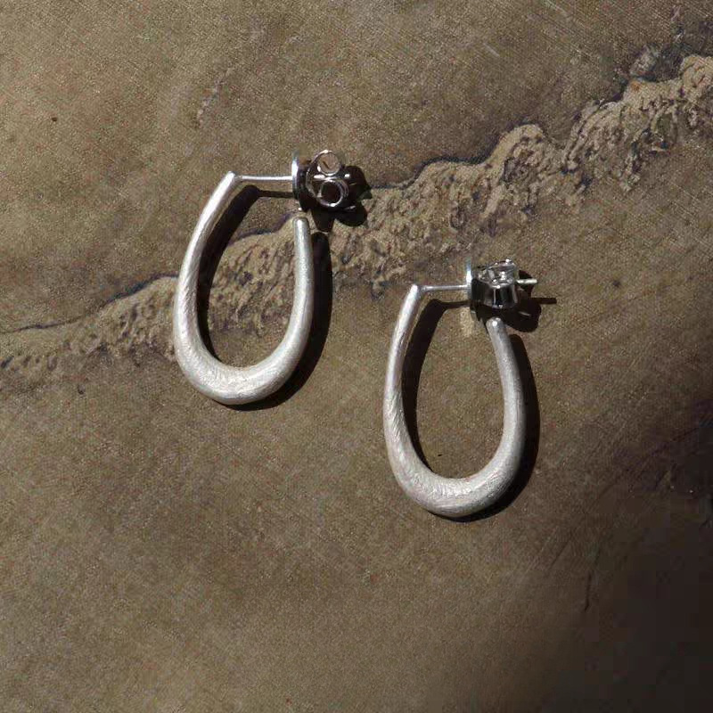 ニッチなデザインのテクスチャードレトロブラッシュイヤリング、ライトラグジュアリーでハイエンドな陶器のイヤリング、925シルバーのニードルイヤリング