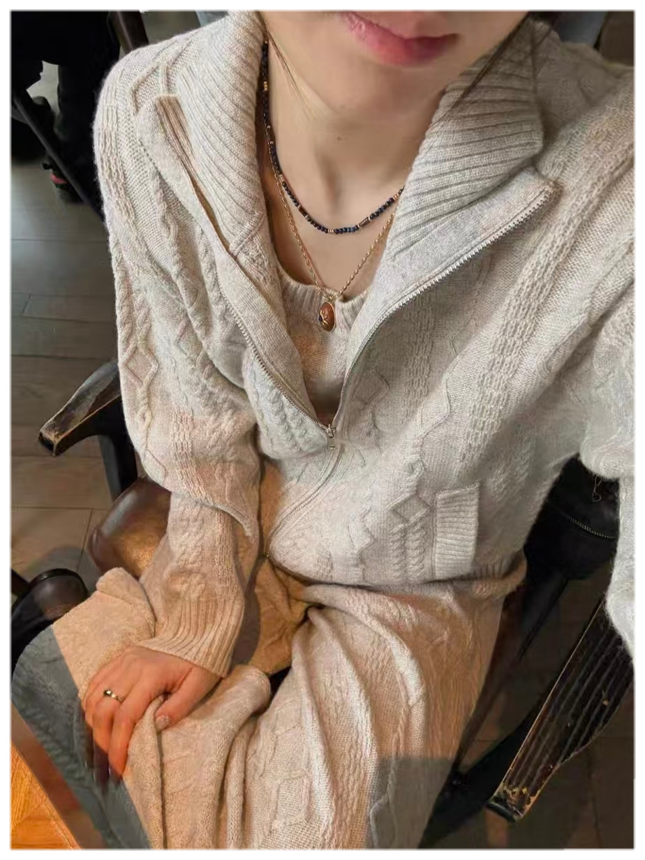 休闲度假风编绳项链天然石串珠叠戴毛衣链高级感气质时髦项饰