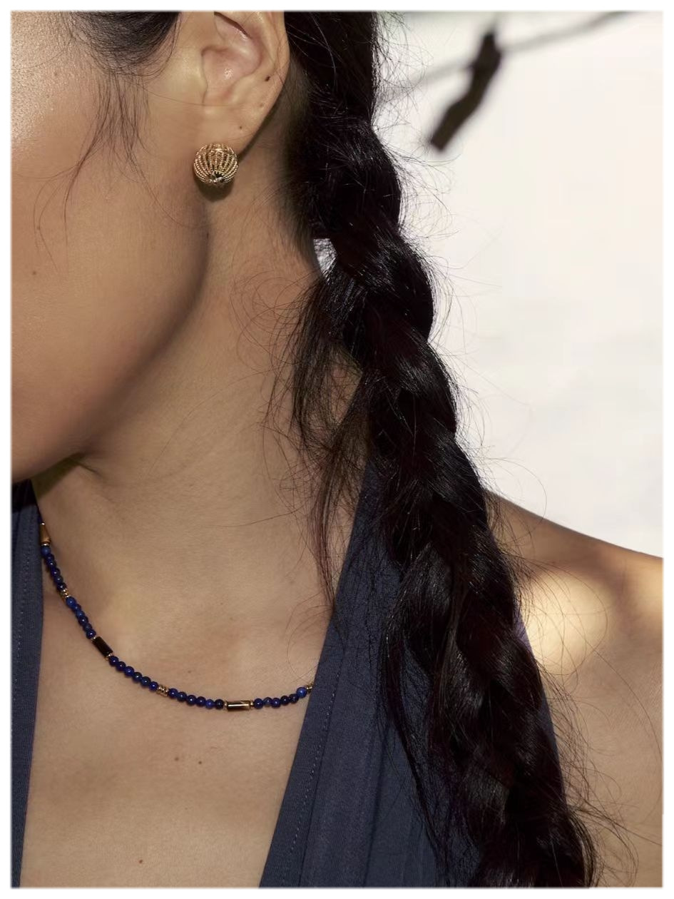 纽扣棕榈青金石耳钉女耳环个性百搭复古设计款耳饰可调节开口戒指