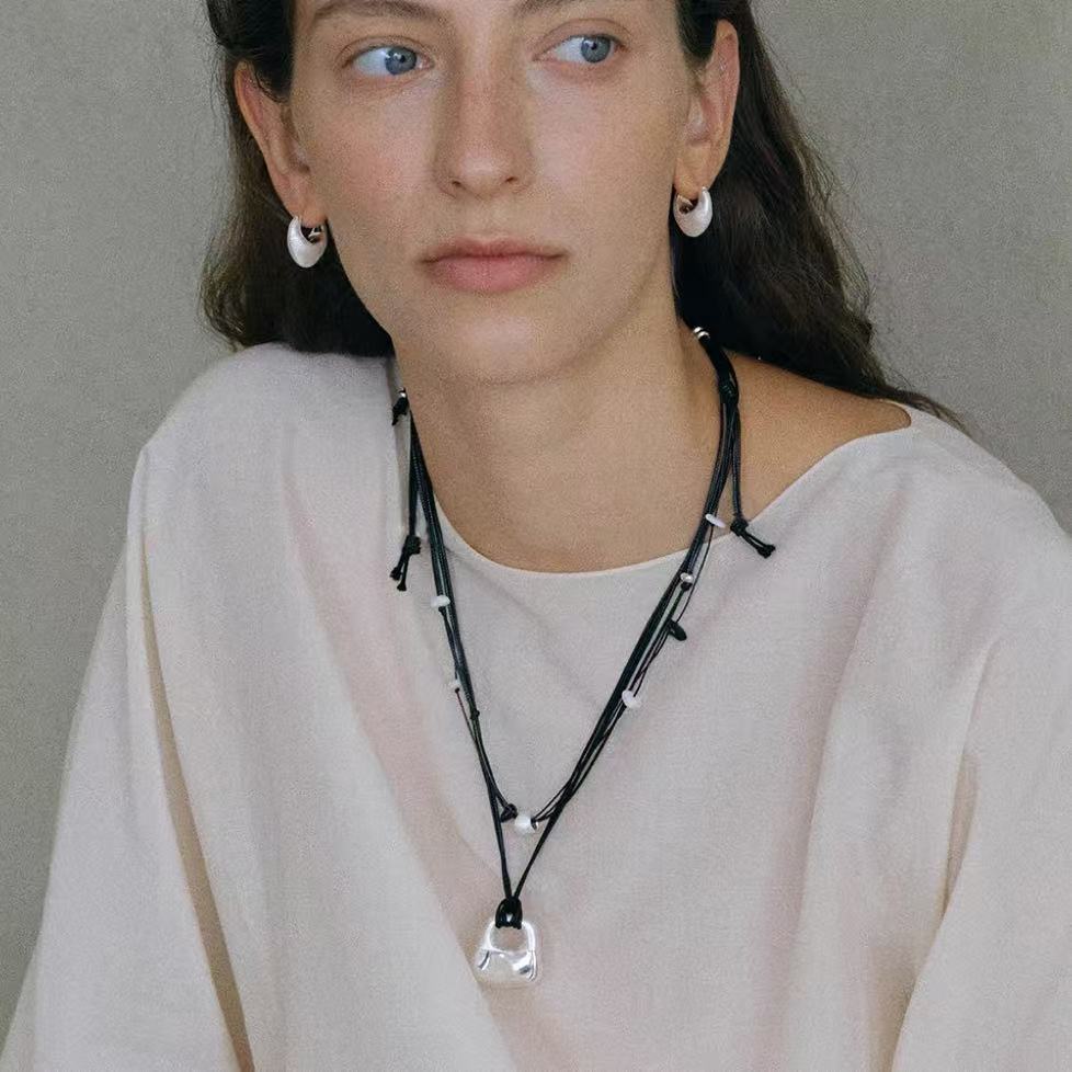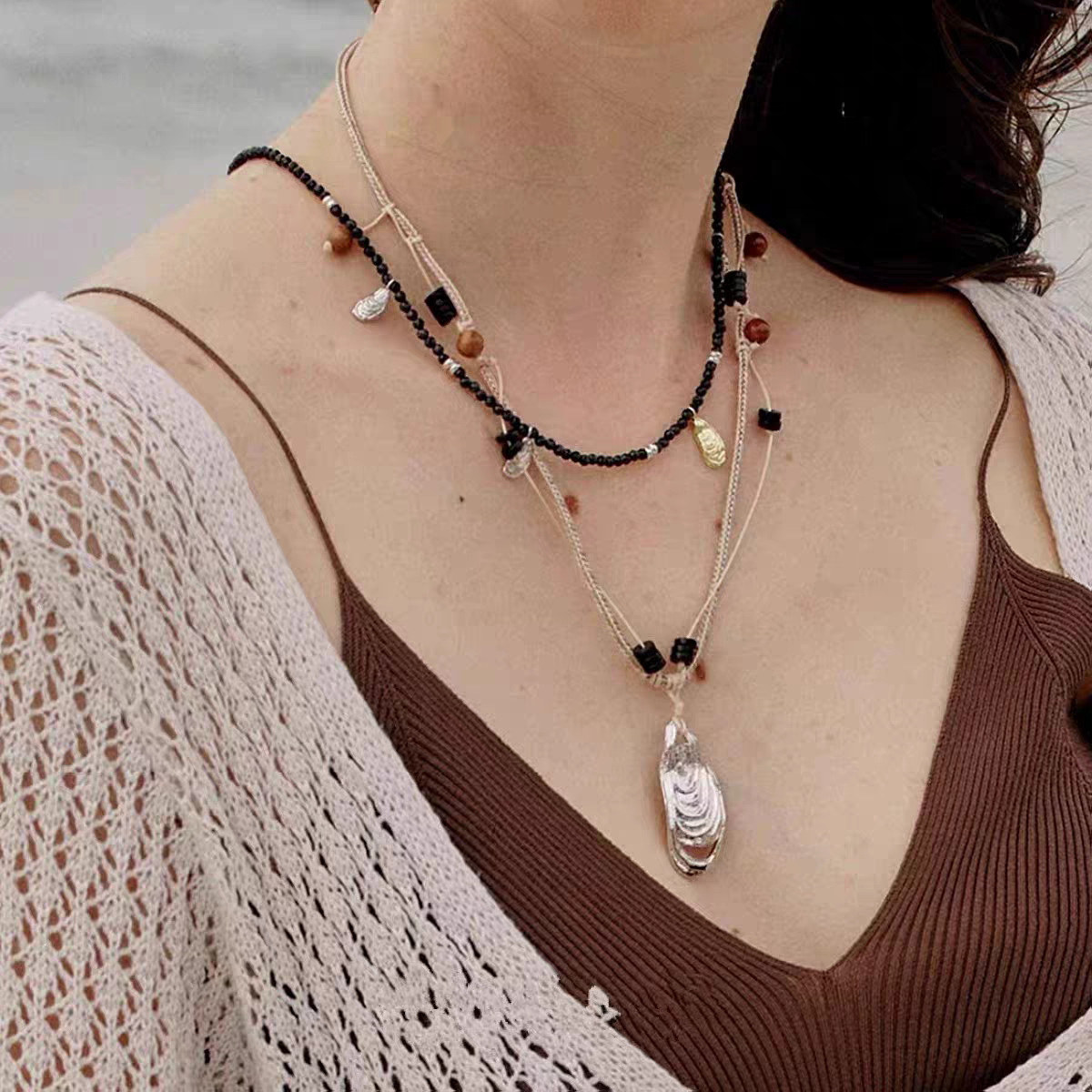 欧美时尚甜酷风编织绳串珠项链小众设计贝类吊坠个性锁骨
