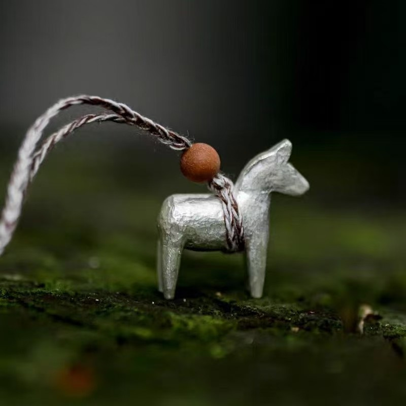 2025新款小马檀木珠项链时尚百搭休闲款编织绳毛衣链小众设计
