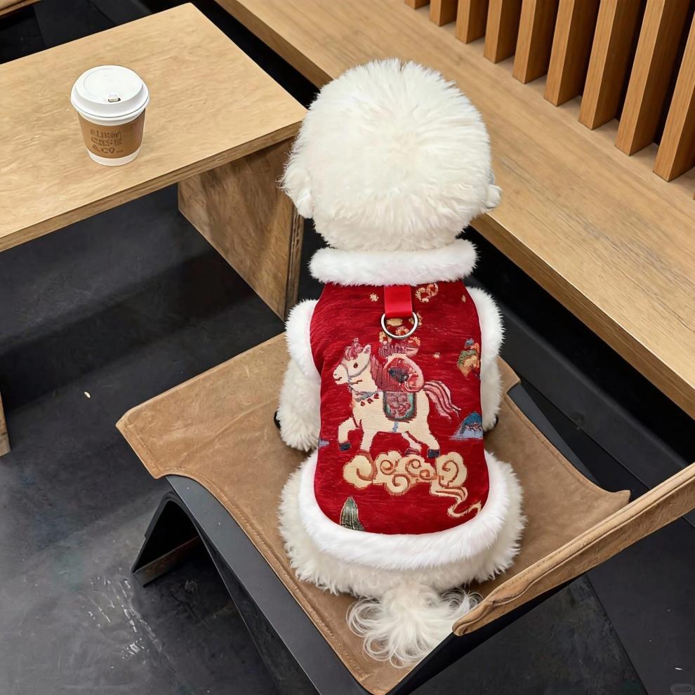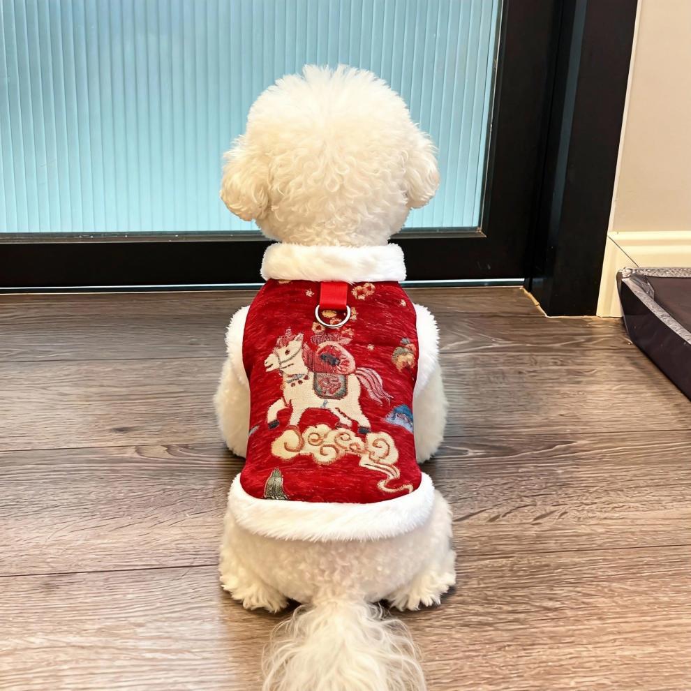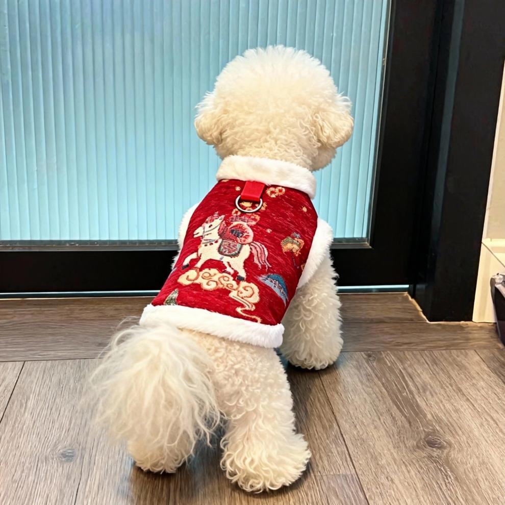 狗狗新年衣服冬季唐装保暖毛绒加厚背心比熊泰迪小型犬喜庆拜年服
