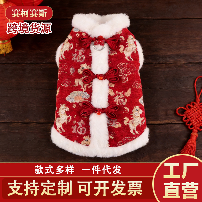 狗狗新年衣服冬季唐装保暖毛绒加厚背心小型犬泰迪比熊喜庆拜年服