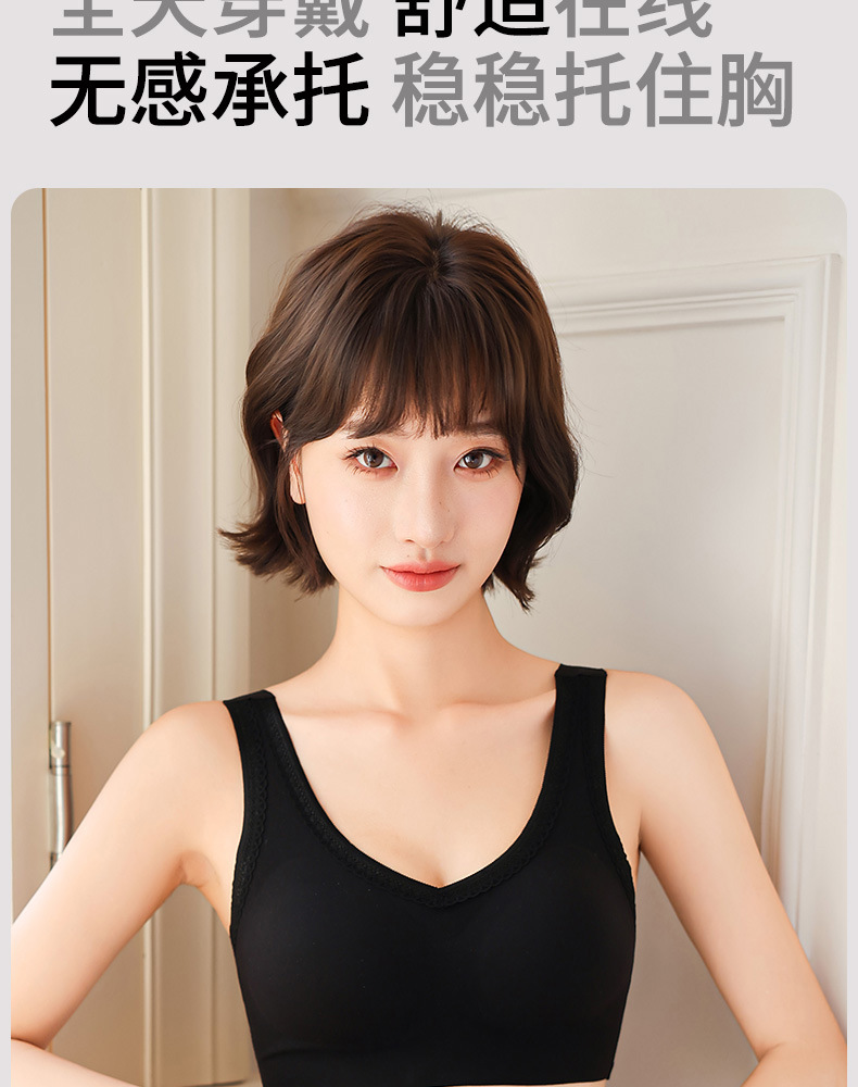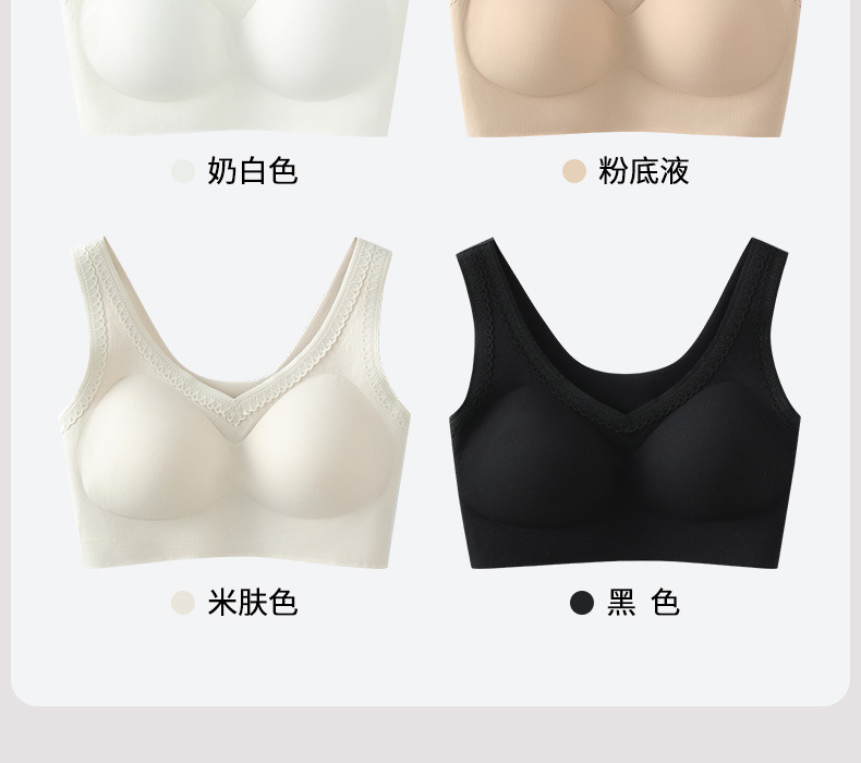 秋冬新款磨毛文胸无痕美背蕾丝边高颜值内衣女裸感亲肤背心式显小