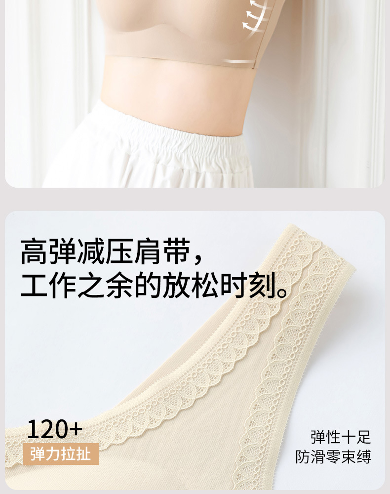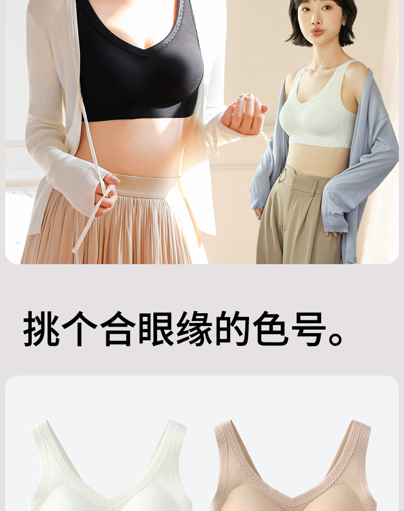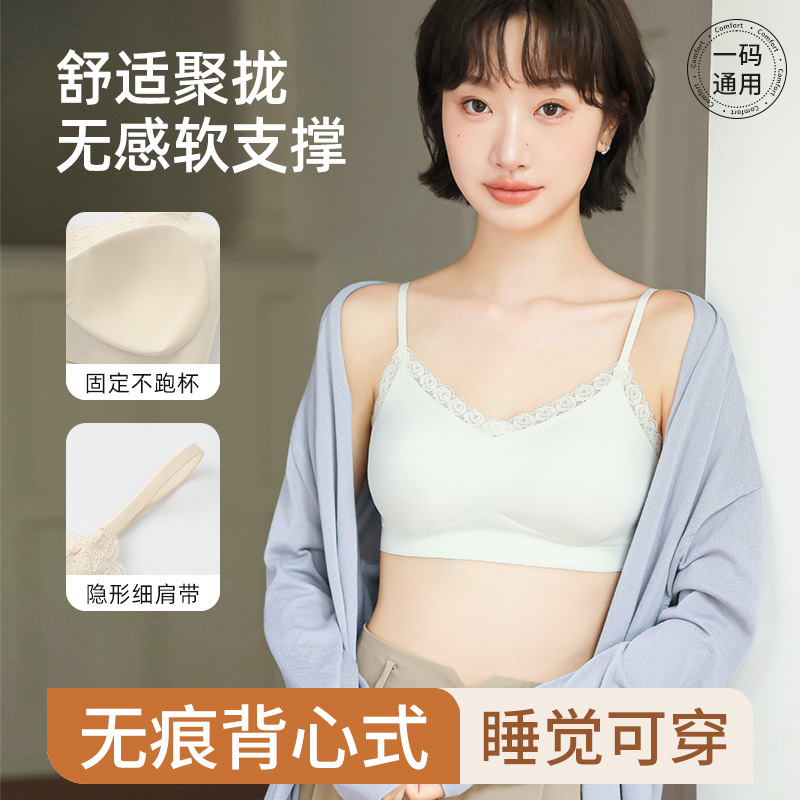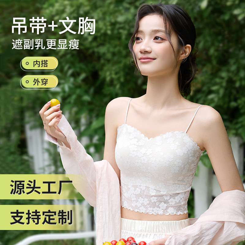 宽肩带蕾丝美背文胸女一体防走光抹胸固定杯无痕百搭软支撑背心