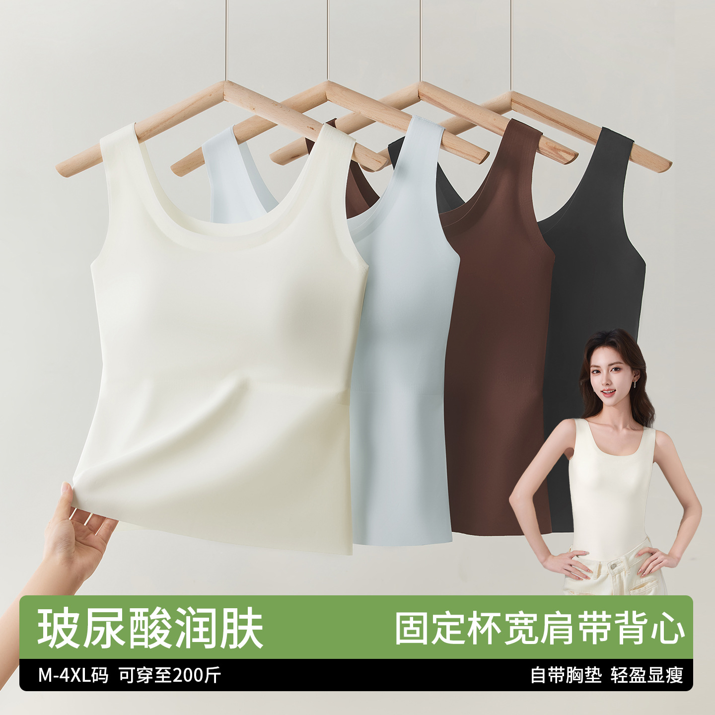 吊带背心女自带胸垫一体式文胸无痕固定杯内衣大码胖mm200斤内搭