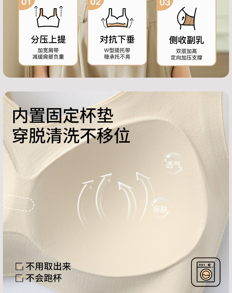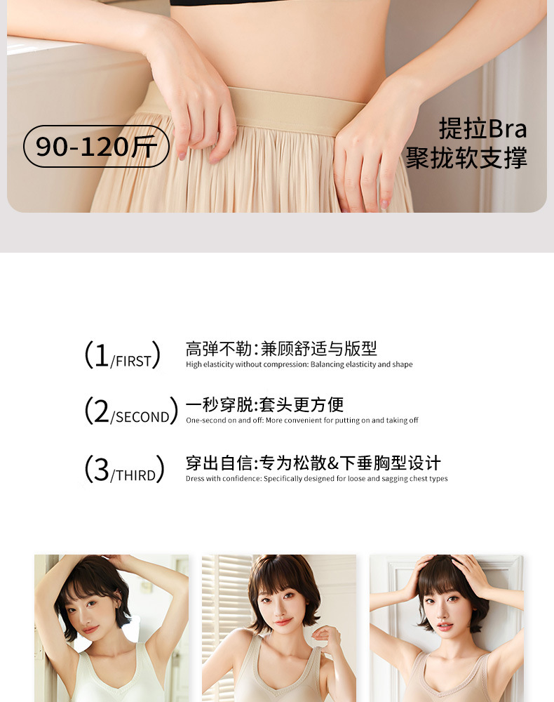 無痕粉底液ステルス下着女性夏の薄いタイプのスチールリングのない大きい胸は小さくて快適で、痩せています。