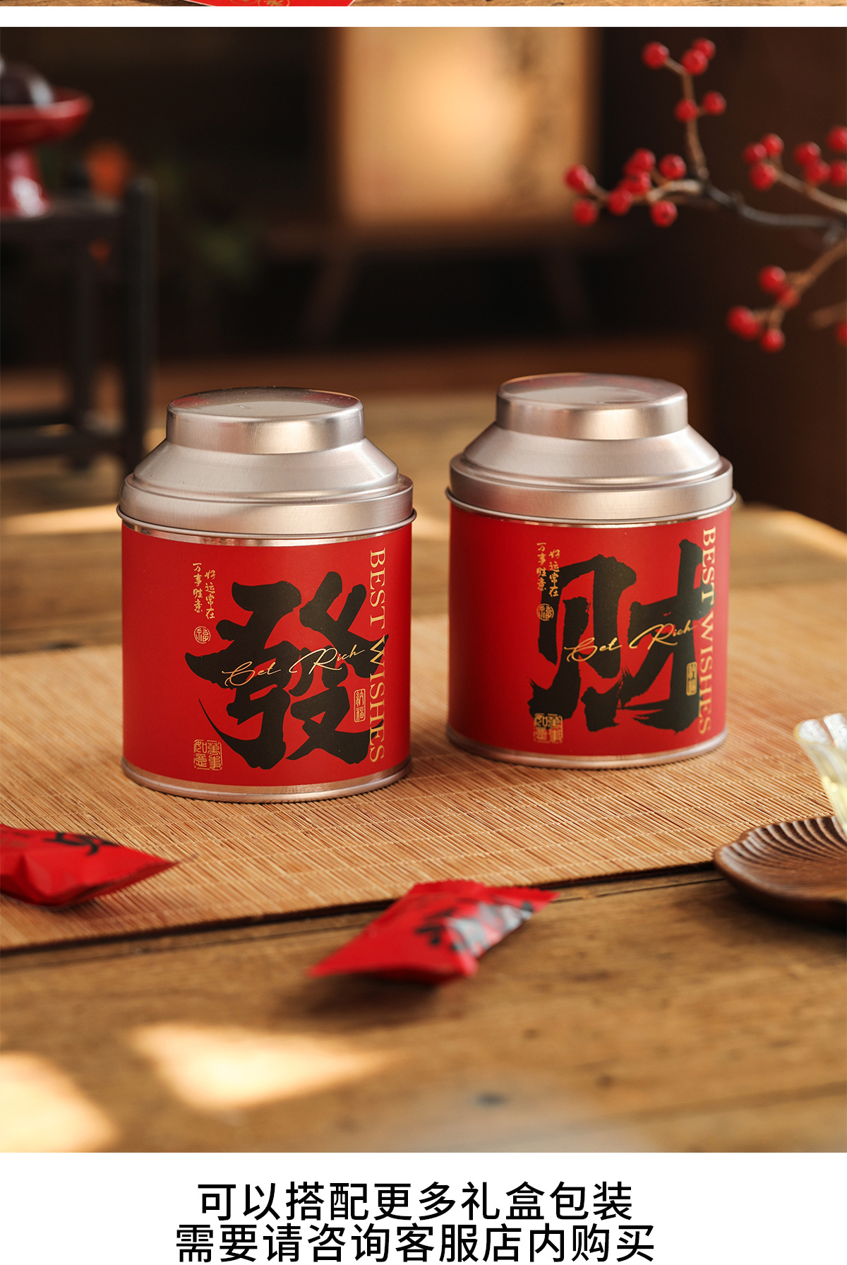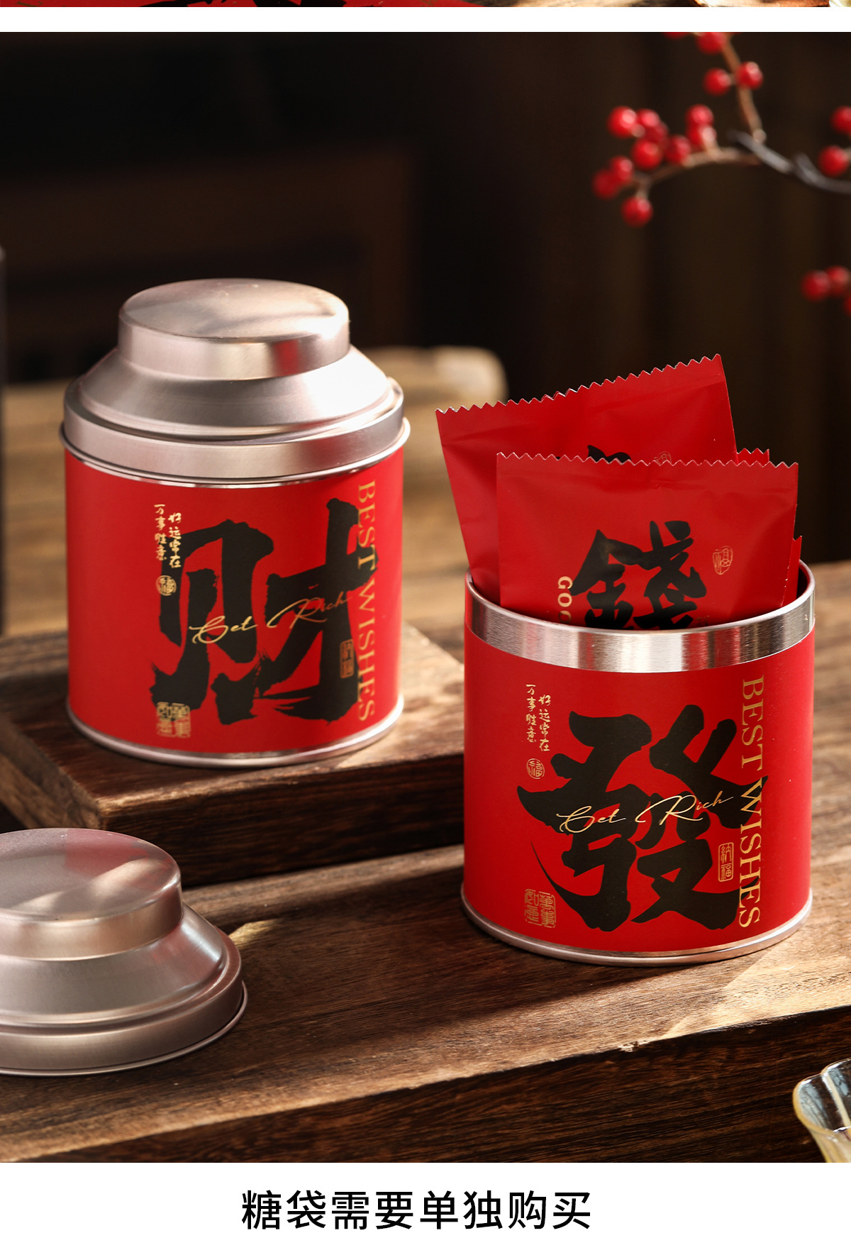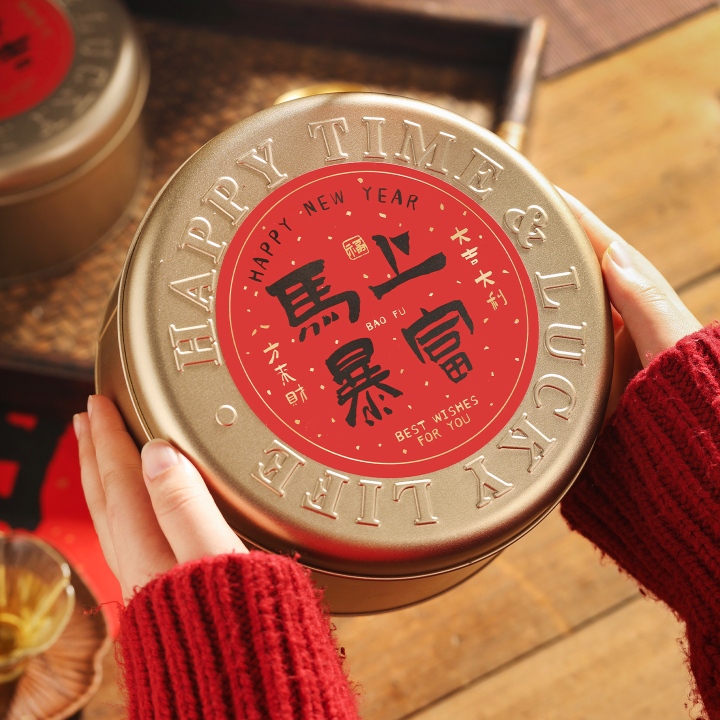 新年长方形铁罐密封罐太妃糖高颜值食品包装盒便携储物仪式感糖盒