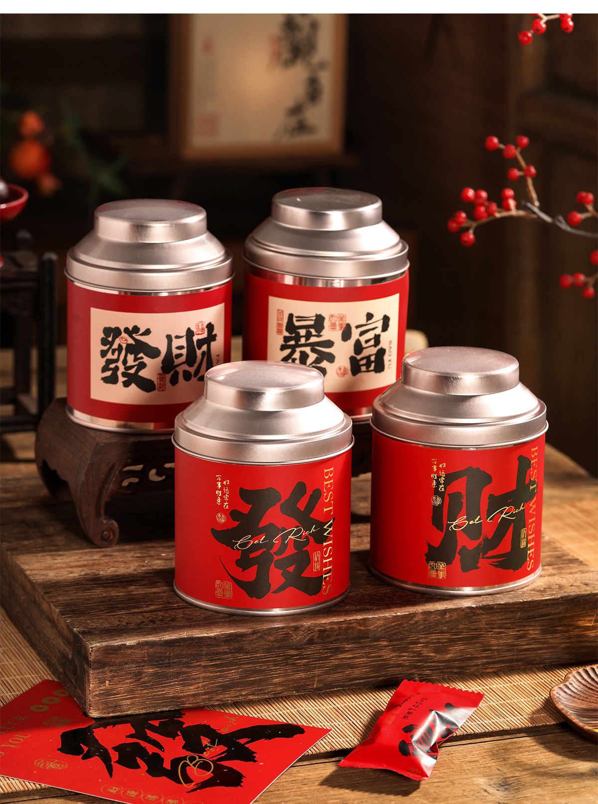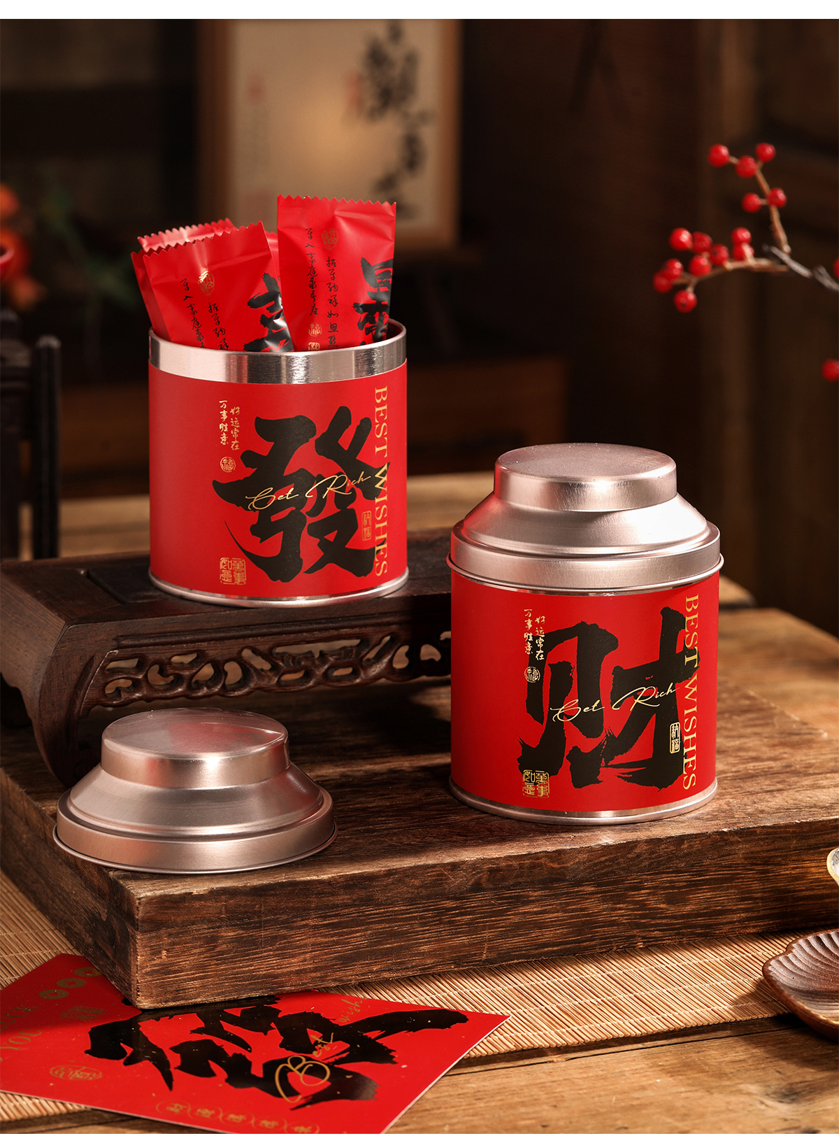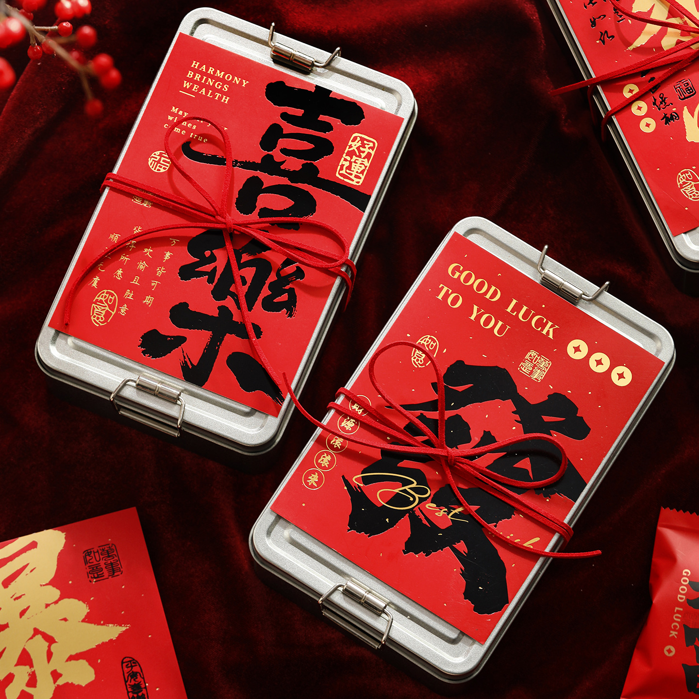 新年长方形铁罐密封罐太妃糖高颜值食品包装盒便携储物仪式感糖盒