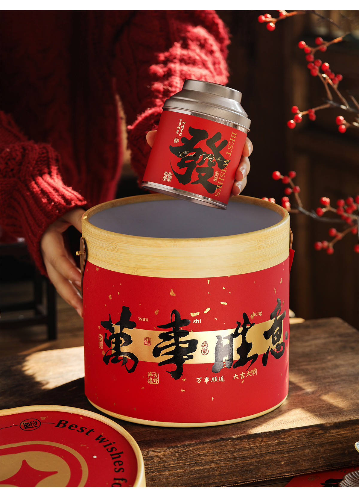 2026年新年ギフトボックス包装中国風草編み抱き桶馬年ビスケットキャンディ空箱春節新年ギフトボックス