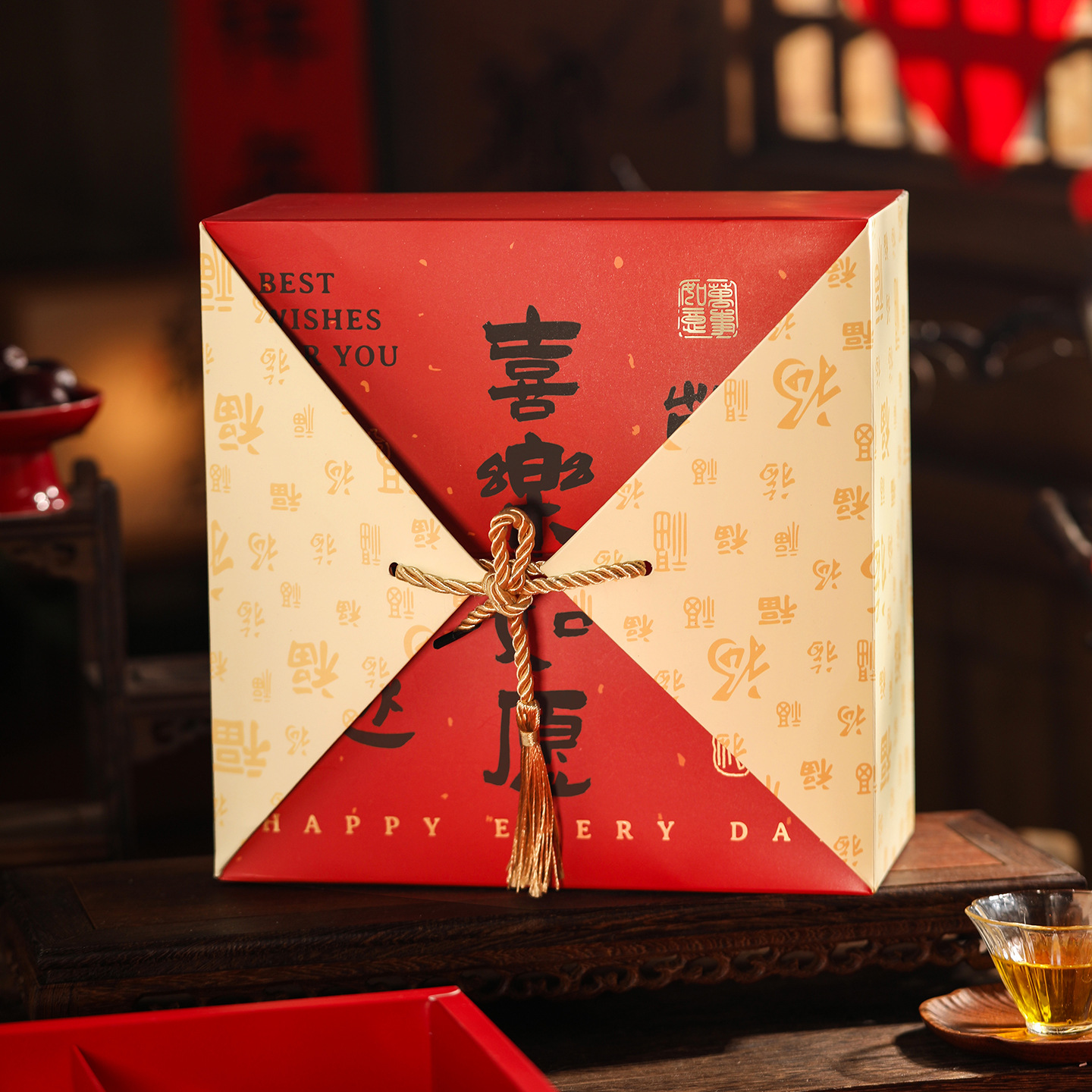 2024 新年ギフトボックス包装箱赤窓手作り高級辰年春祭りギフト新年ギフト空箱