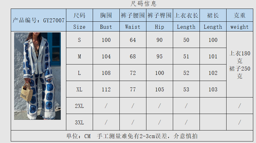 GY27007时尚拼色长袖度假风棉麻印花套装2026年春夏新品