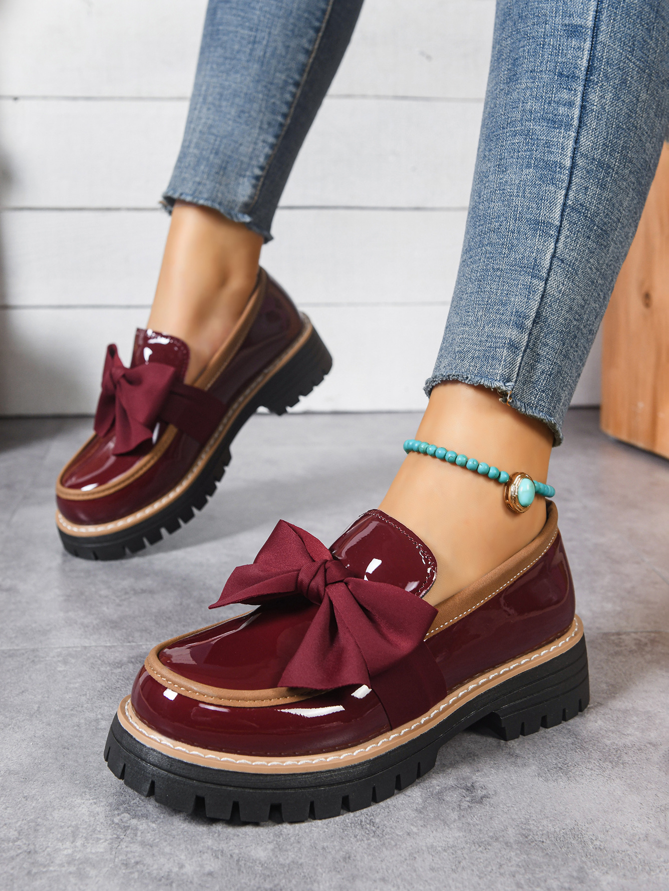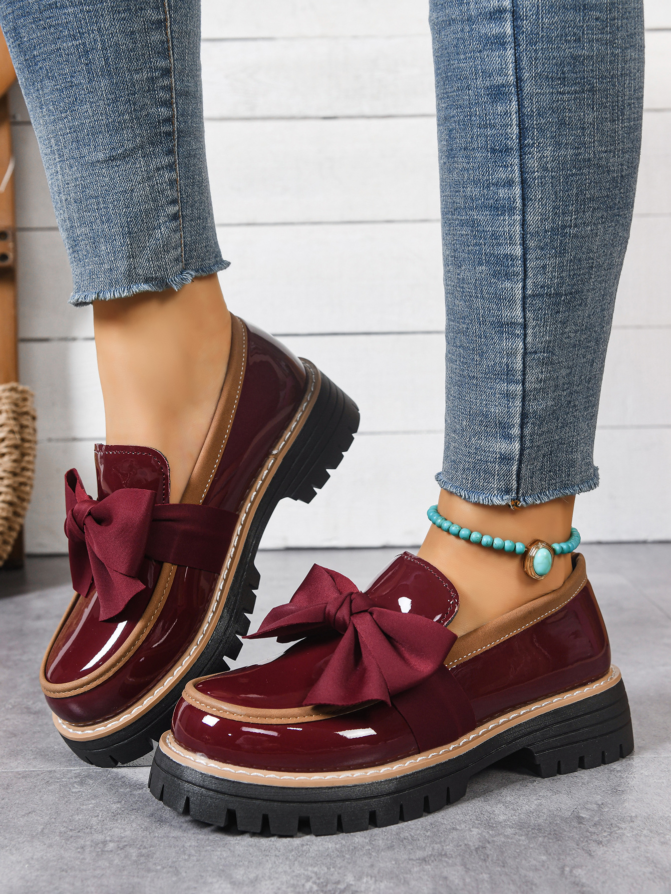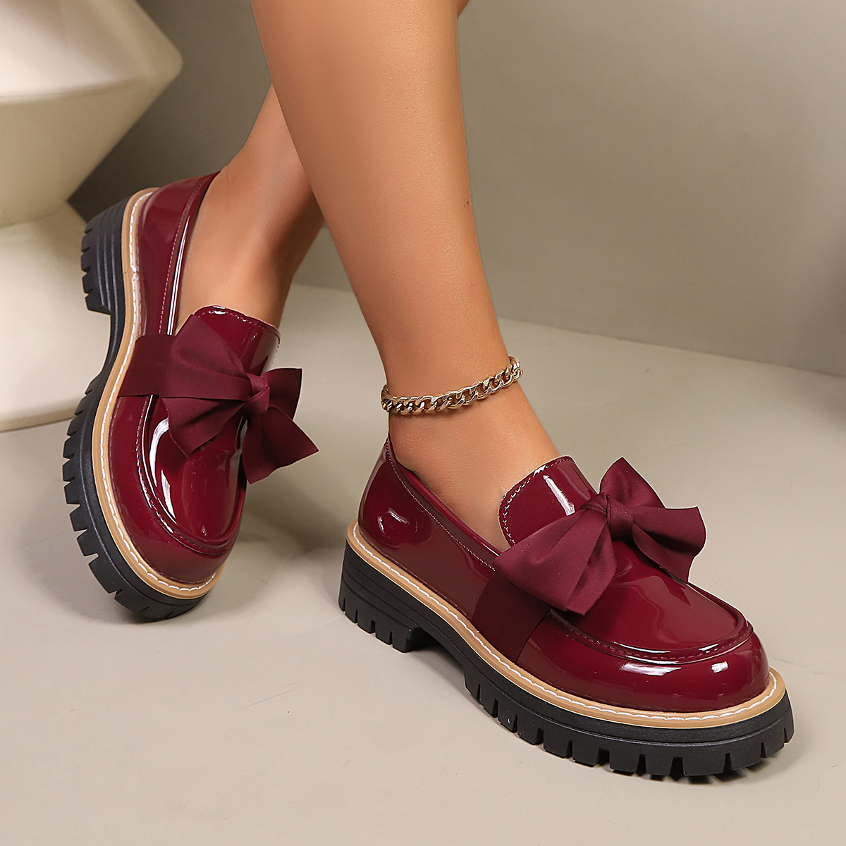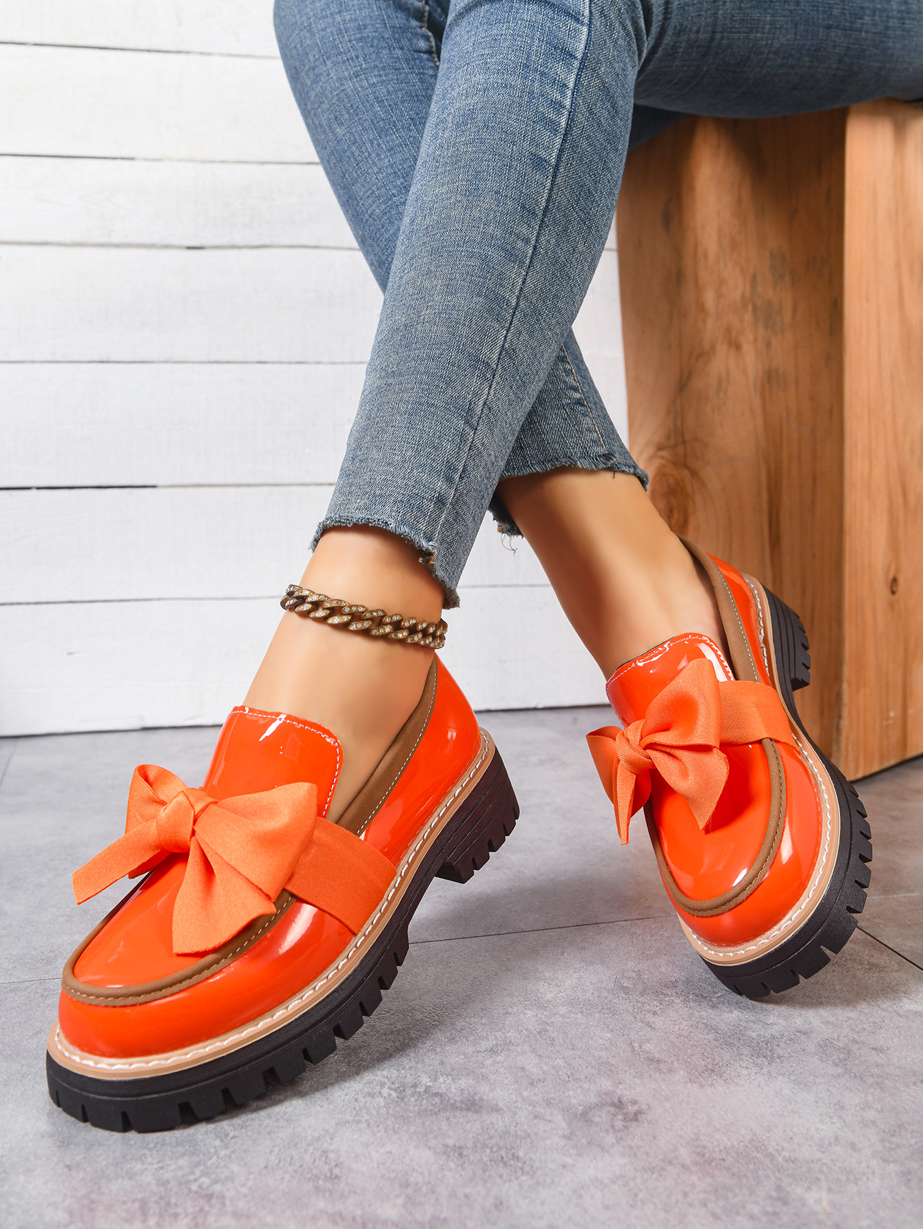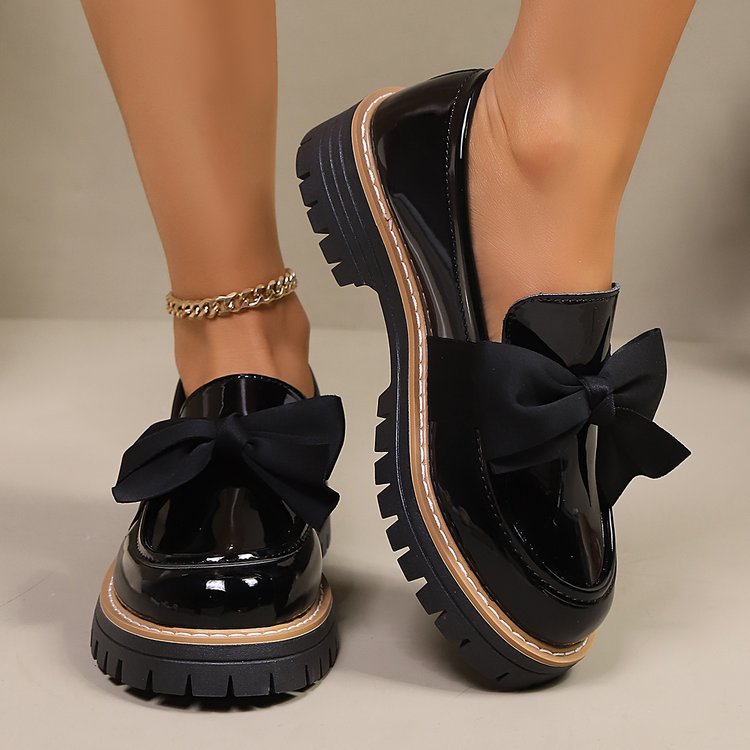 2026跨境大码36-43码乐福鞋女时尚小众蝴蝶结厚底复古单鞋女批发