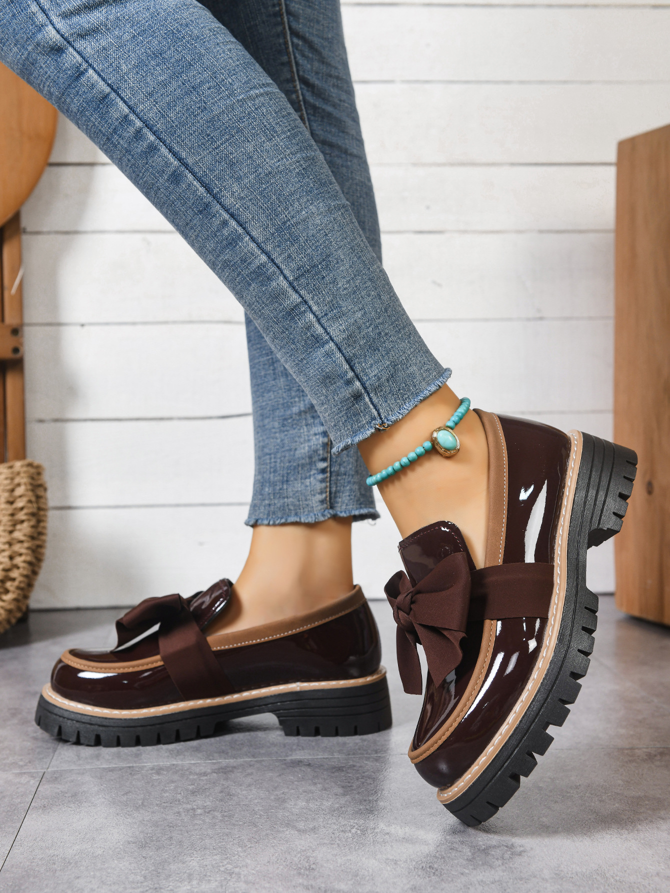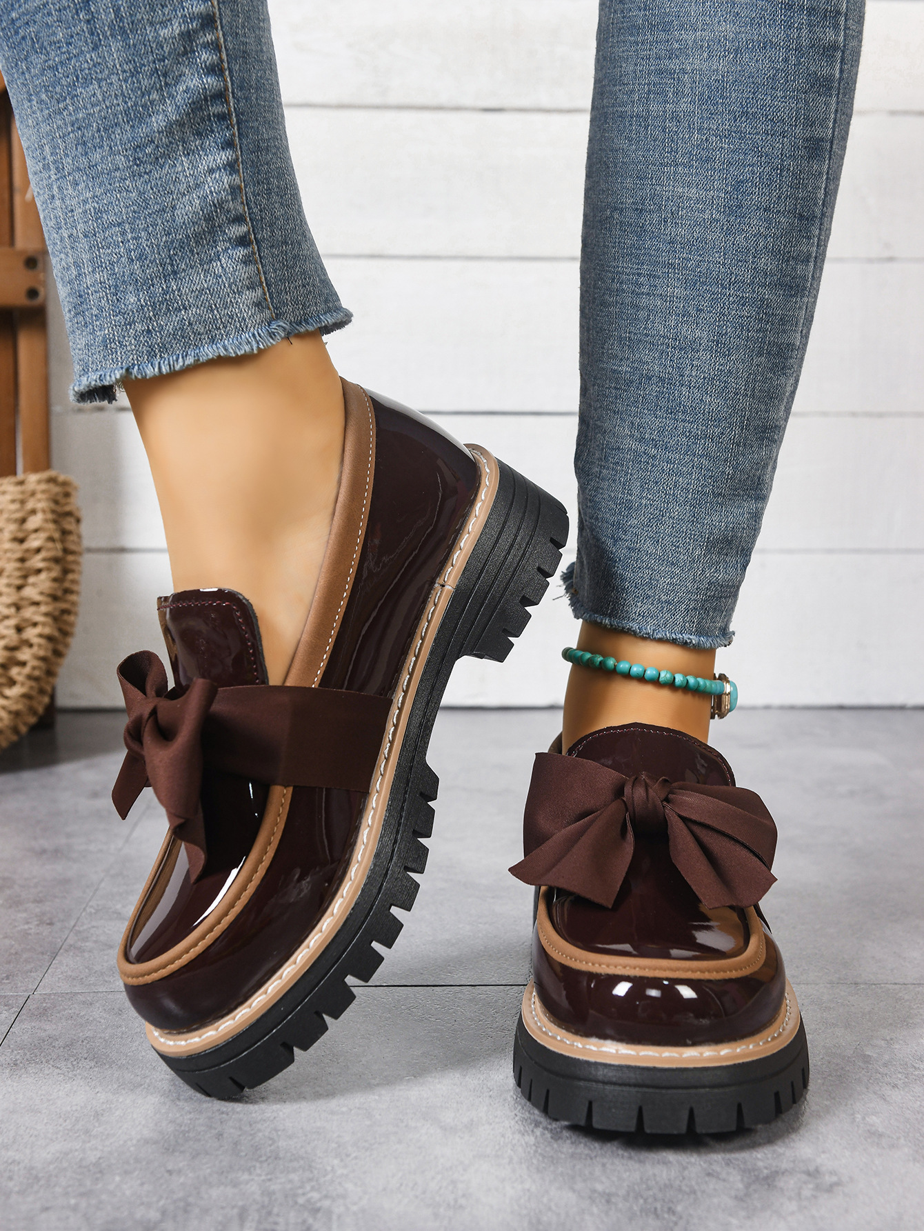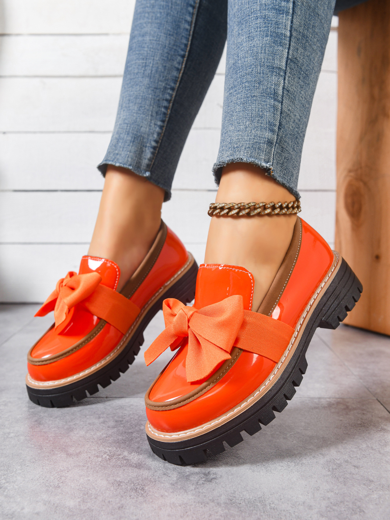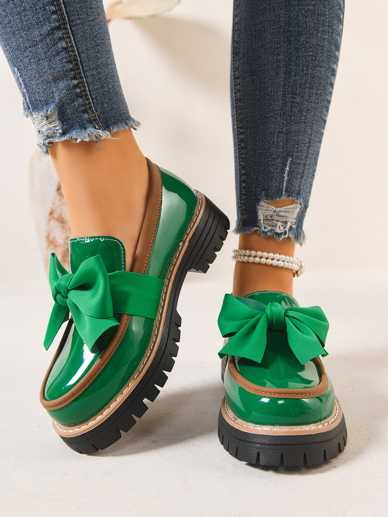 2026跨境大码36-43码乐福鞋女时尚小众蝴蝶结厚底复古单鞋女批发