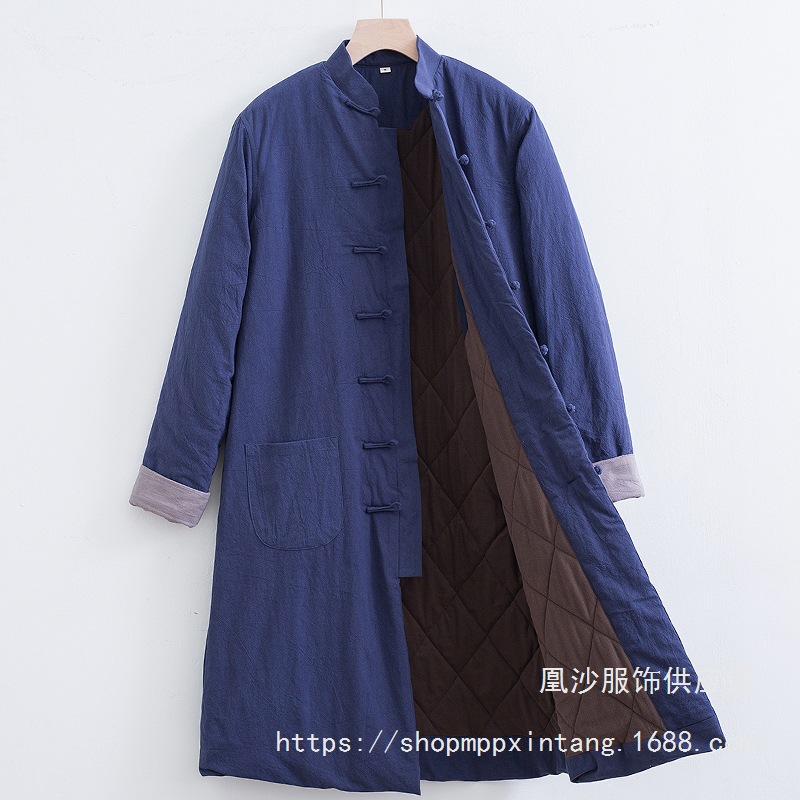 冬の男性の居士服の道着中国風の中国式の長いタイプの綿の服の唐服の綿入れの上着の厚い保温の綿服の鳳凰の砂